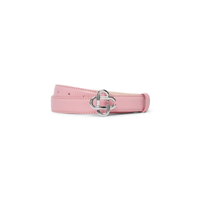 De roze Cc-logo riem met gesp voor dames heeft een band van Italiaans kalfsleer. Afgewerkt met de kenmerkende in elkaar grijpende Cc-gesp van het huis, vervaardigd uit verzilverd messing.