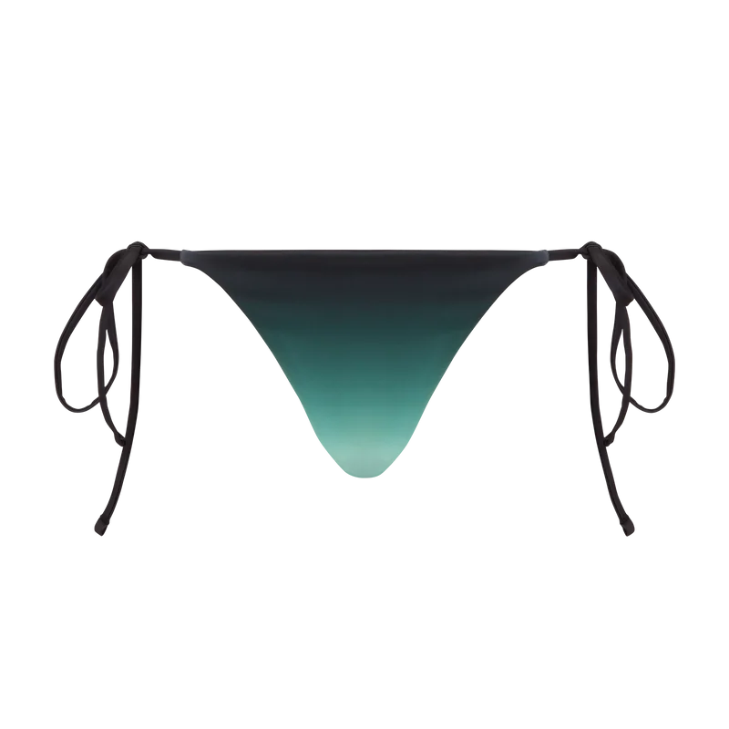 De Gradient bikinibroek is een bedrukt ontwerp gemaakt van ademende technische zwemstof, met een mintkleurig kleurverloop dat is geïnspireerd op de kleurstelling van het Park Hyatt, een iconisch hotel in Tokio dat mint en zwart gebruikt in het interieurontwerp. Afgewerkt met touwsluitingen op de heupen – dit stuk is ontworpen om te worden gedragen met de bijpassende bikinitop.