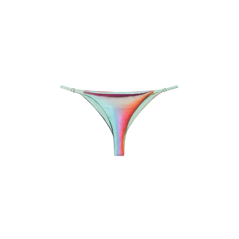 Het Glass Gradient bikinibroekje is een klassiek ontwerp met het unieke artwork van dit seizoen, gecreëerd in samenwerking met Martin Naumann, bekend om zijn werk waarin hij kleurverlopen en textuureffecten combineert met halftoon- en glasachtige effecten. Afgewerkt met het Warped-logo van het huis. Ontworpen om te dragen met de bijpassende bikinitop.