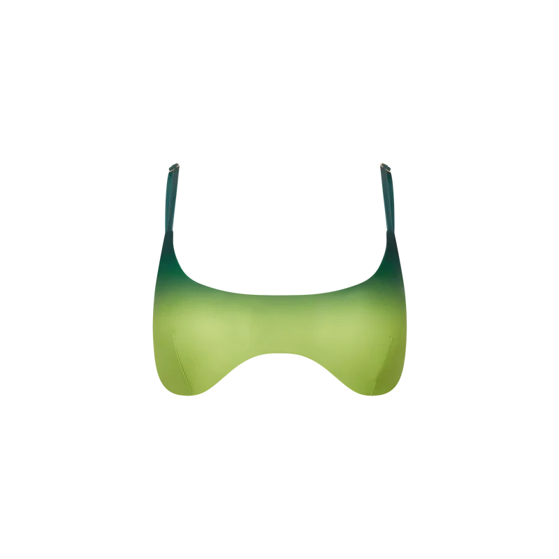 De Gradient-bikinibeh is een bedrukt ontwerp, vervaardigd uit technische zwemstof. Afgewerkt met contrasterende witte koordjes aan de hals en rug, uitneembare cupsteunen en de kenmerkende vergulde, in elkaar grijpende CC-klinknagel van het huis op de linker cup. Dit stuk is ontworpen om te worden gedragen met het bijpassende bikinibroekje.