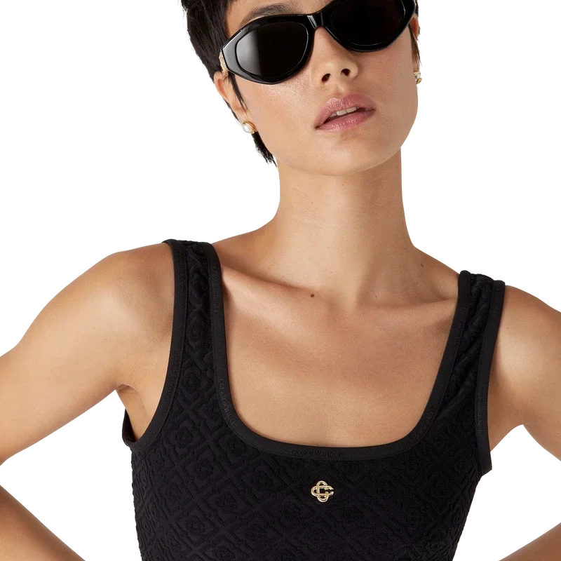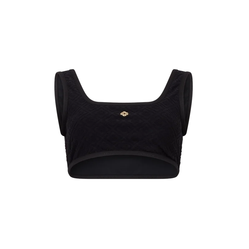 De Monogram Jacquard bikinitop is vervaardigd uit ademende technische zwemstof en voorzien van het vergulde, kenmerkende in elkaar grijpende CC-klinknagel van het huis. Afgewerkt met bandjes – Dit stuk is ontworpen om te worden gedragen met het bijpassende bikinibroekje.