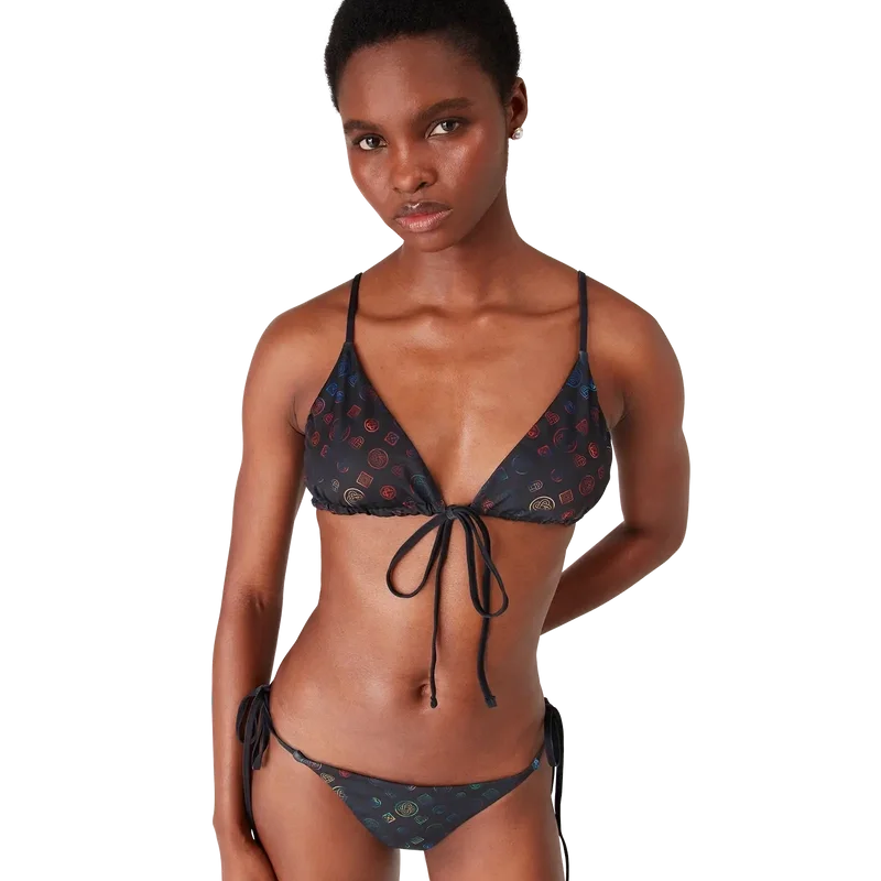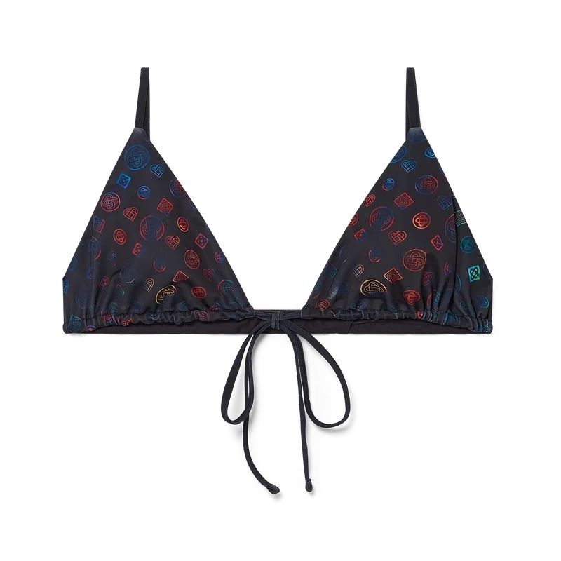 De Monogram String-bikinitop is een klassiek driehoekig ontwerp met de iconische veelkleurige Monogram-print van het huis. Afgewerkt met uitneembare cups en strikbandjes bij de hals en op de rug. Ontworpen om te dragen met het bijpassende Monogram-bikinibroekje.
