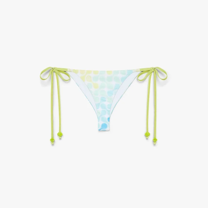 De Optic Drop String Beaded Bikini Bottoms zijn een bedrukt ontwerp gemaakt van ademende stof, met het tennis-tegelontwerp van dit seizoen van elkaar kruisende logo’s en tennisballen, vermengd met het seizoensgebonden kleurverloop. Afgewerkt met touwsluitingen en de kenmerkende in elkaar grijpende CC-logo-klinknagel van het huis. Ontworpen om te dragen met de bijpassende bikinitop.