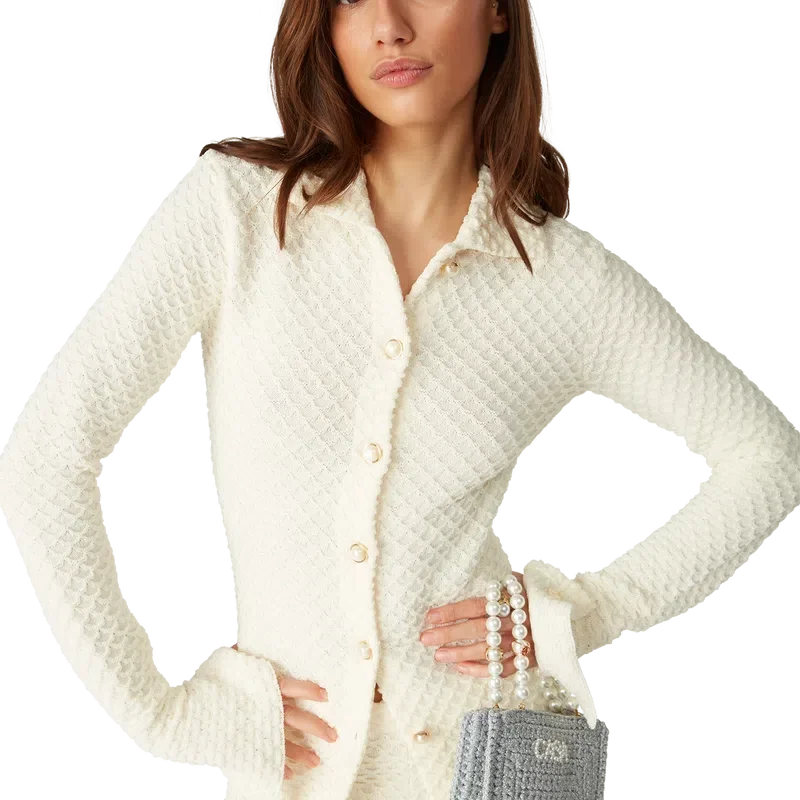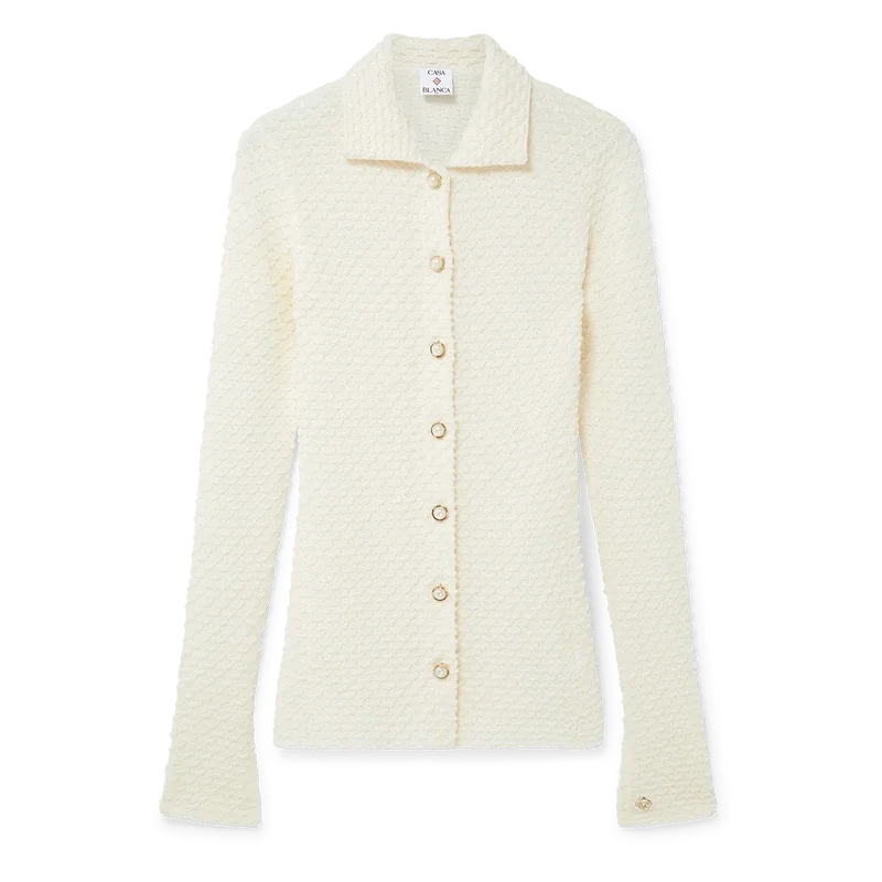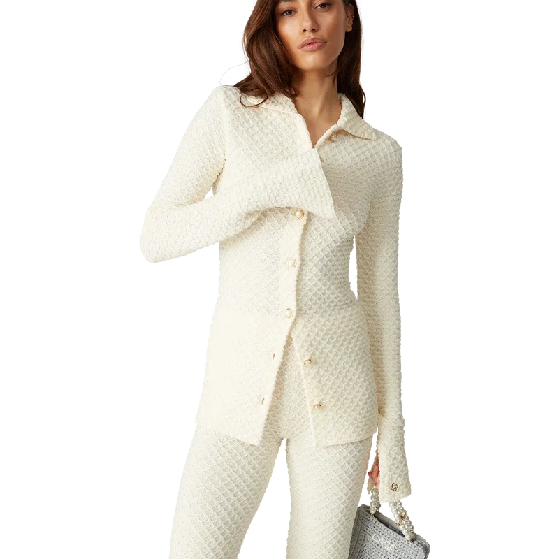 Het overhemd met gestructureerd breisel is een ontwerp met lange mouwen, vervaardigd uit een katoenmix. Afgewerkt met een kraag, uitlopende mouwen met split, knoopsluiting aan de voorkant, kenmerkende parelknopen met gouden rand en een vergulde Cc-klinknagel.