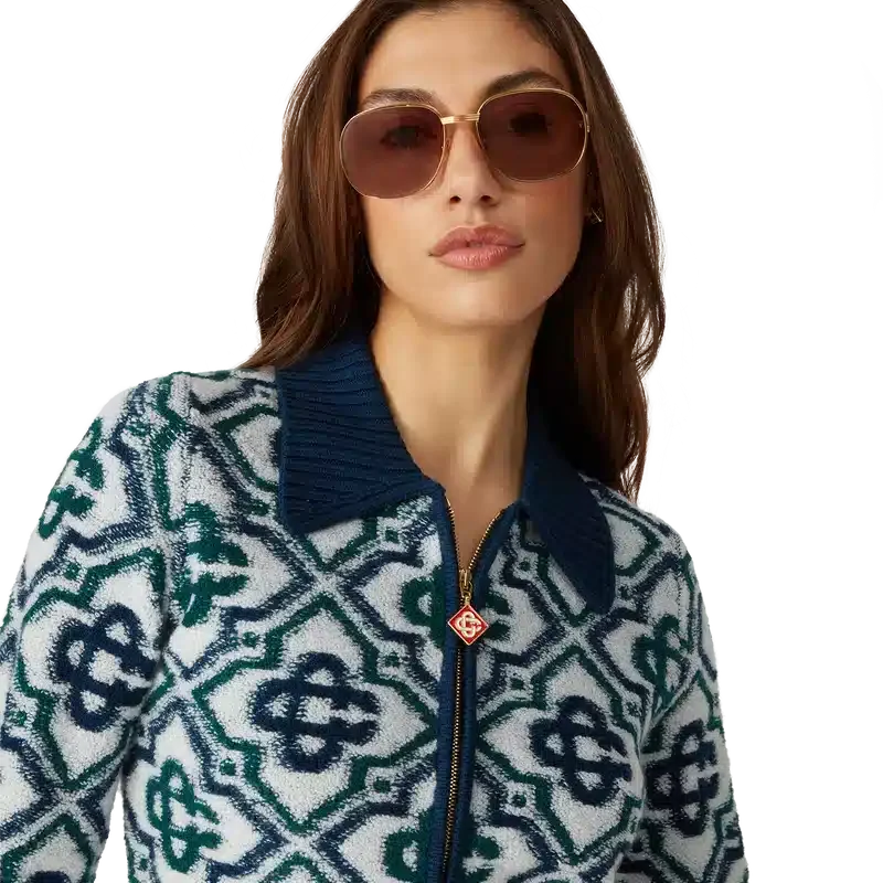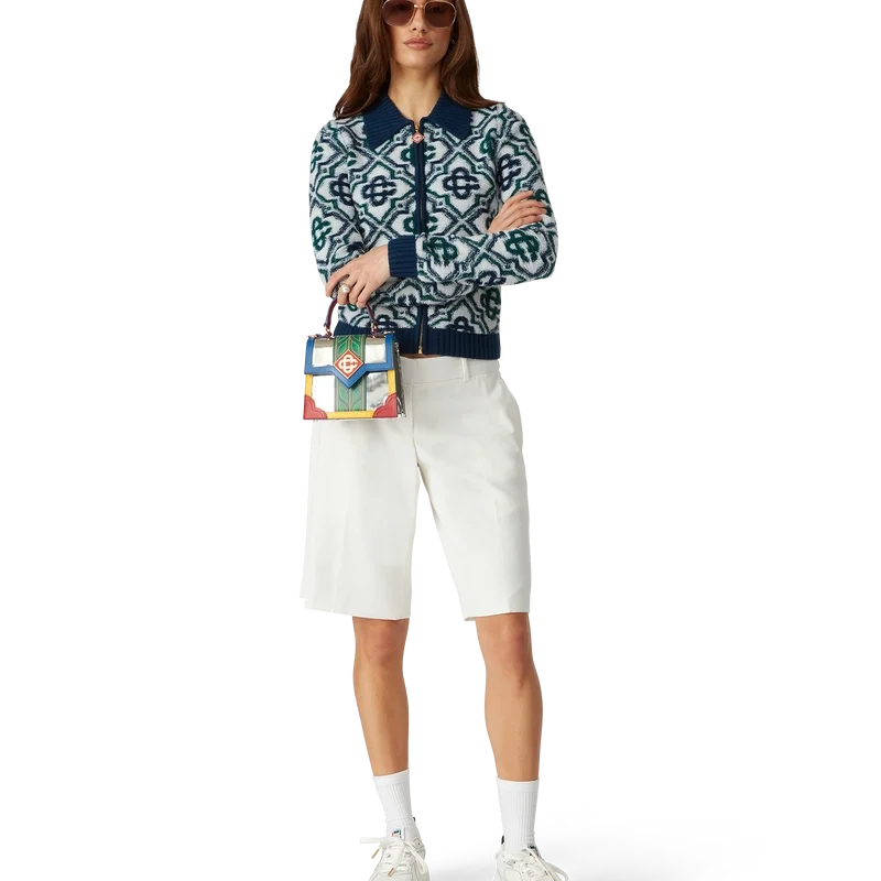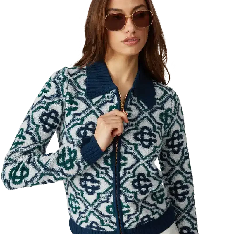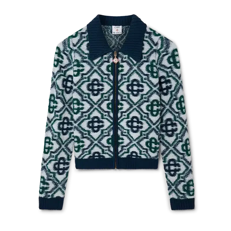 De Monogram Knit Zip Jumper is een klassiek ontwerp met het kenmerkende Monogram van het huis, vervaardigd uit een wolmix-breisel. Afgewerkt met een ritssluiting aan de voorkant, contrasterende geribde kraag, manchetten, zoom en zijzakken.