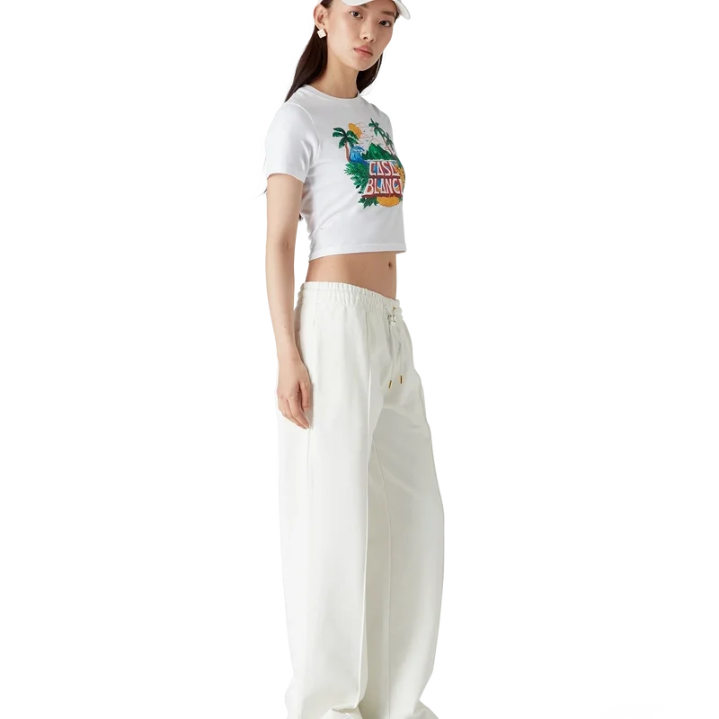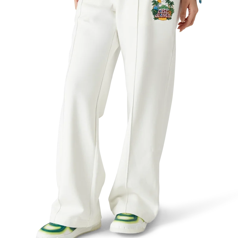De Casa Beach Wave Sweatpants is een bedrukte broek gemaakt van biologisch katoen en voorzien van kenmerkende illustraties die verwijzen naar een souvenir dat je zou kopen tijdens een strandvakantie. Afgewerkt met een elastische tailleband, een trekkoord met gouden uiteinden, steekzakken en een opgestikte zak aan de achterkant.