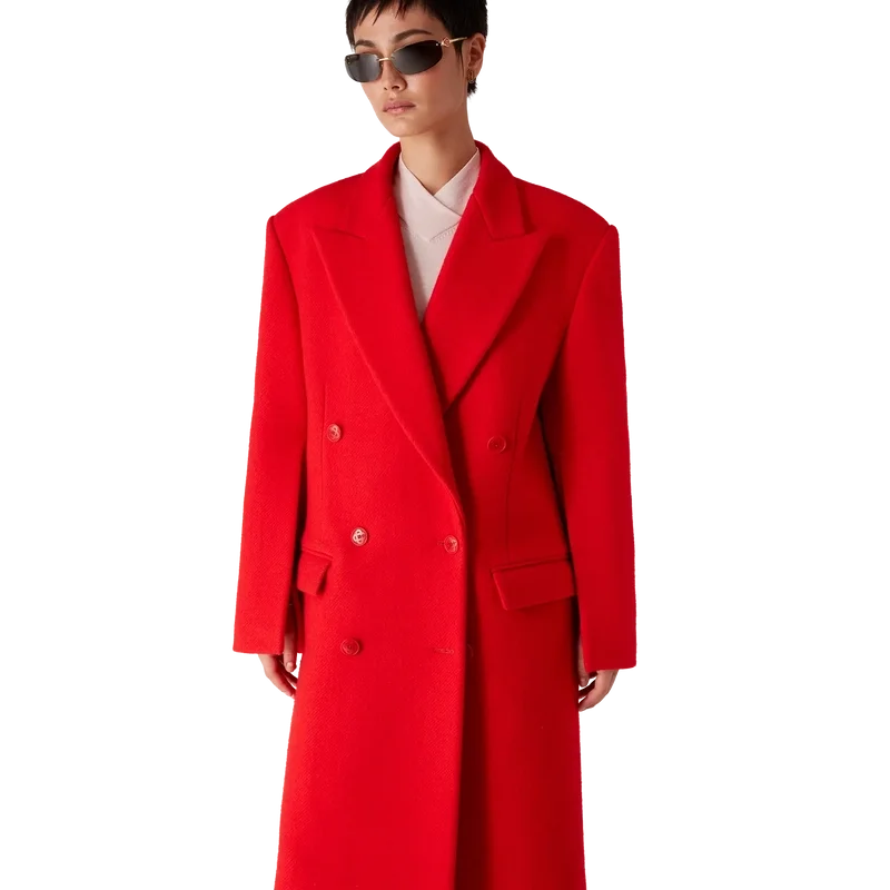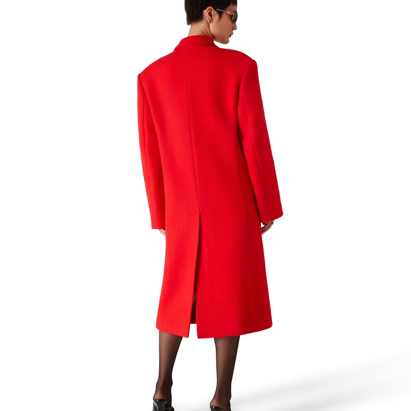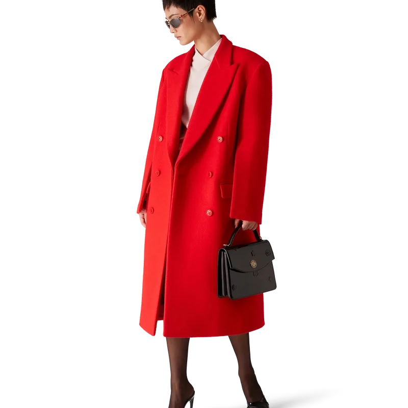 De getailleerde overjas heeft een klassiek double-breasted ontwerp. Afgewerkt met puntrevers, klepzakken, knoopsluiting, in elkaar grijpende Cc Corozo-knopen, een voering, een split en lange mouwen met een plooi aan de binnenkant.