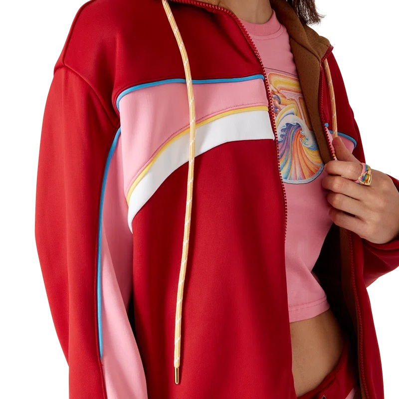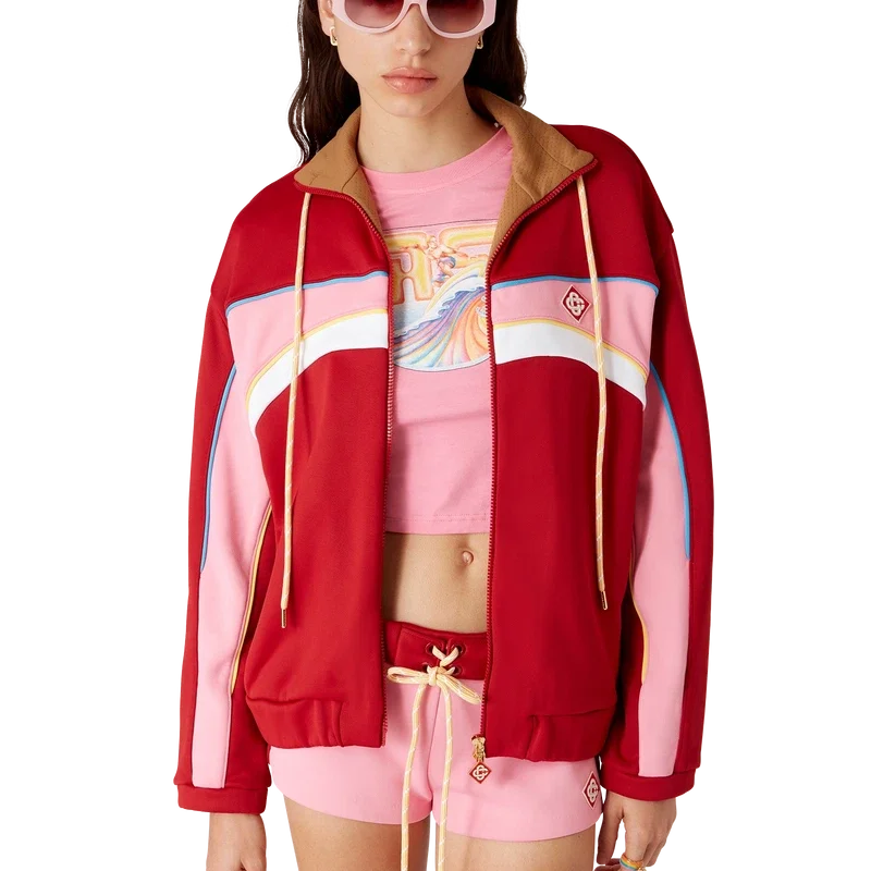 Het Tricot Oversized Trainingsjack is een sportkledingontwerp met lange mouwen, vervaardigd uit tricotstof. Afgewerkt met een trechterhals, trekkoordsluiting, ritssluiting en elastische manchetten en zoom.