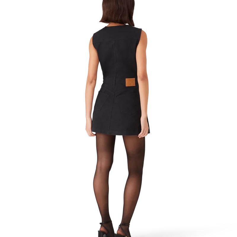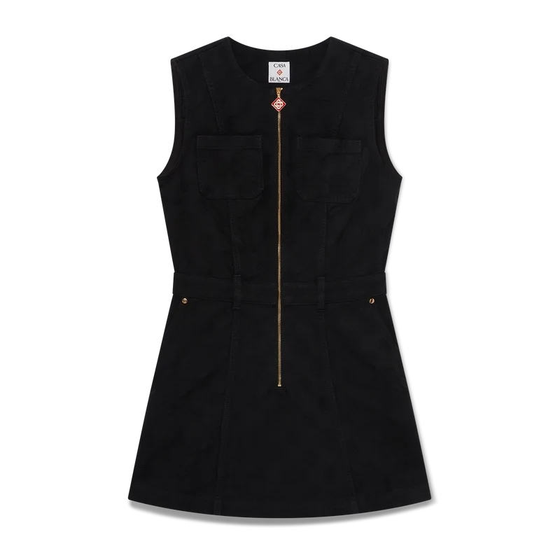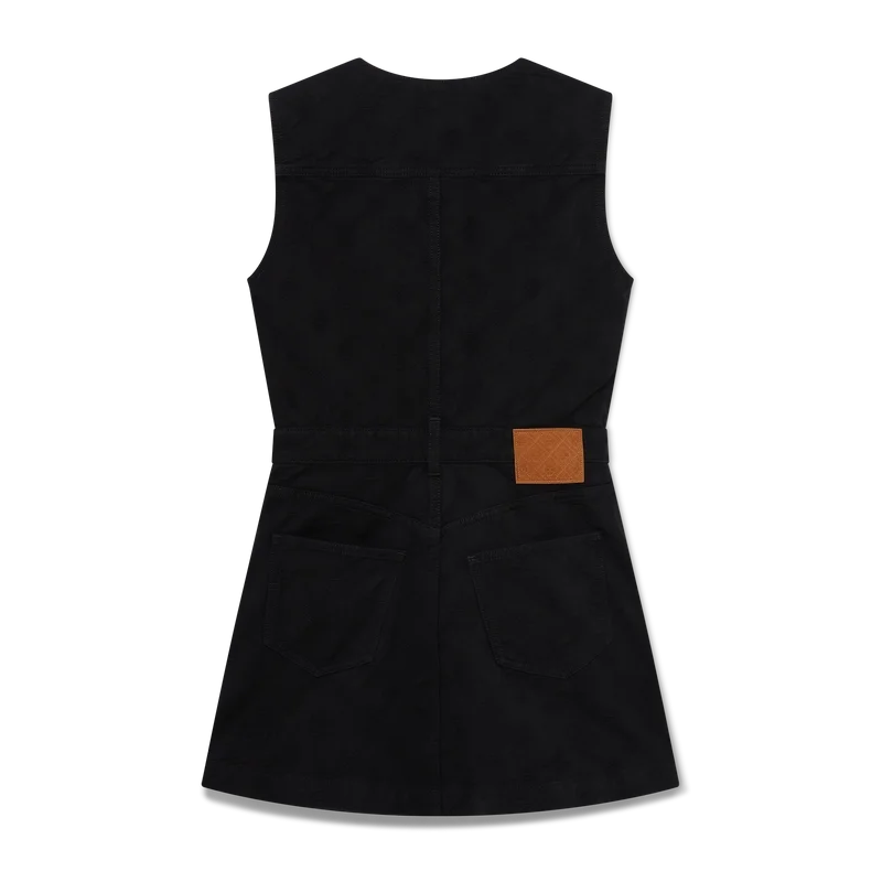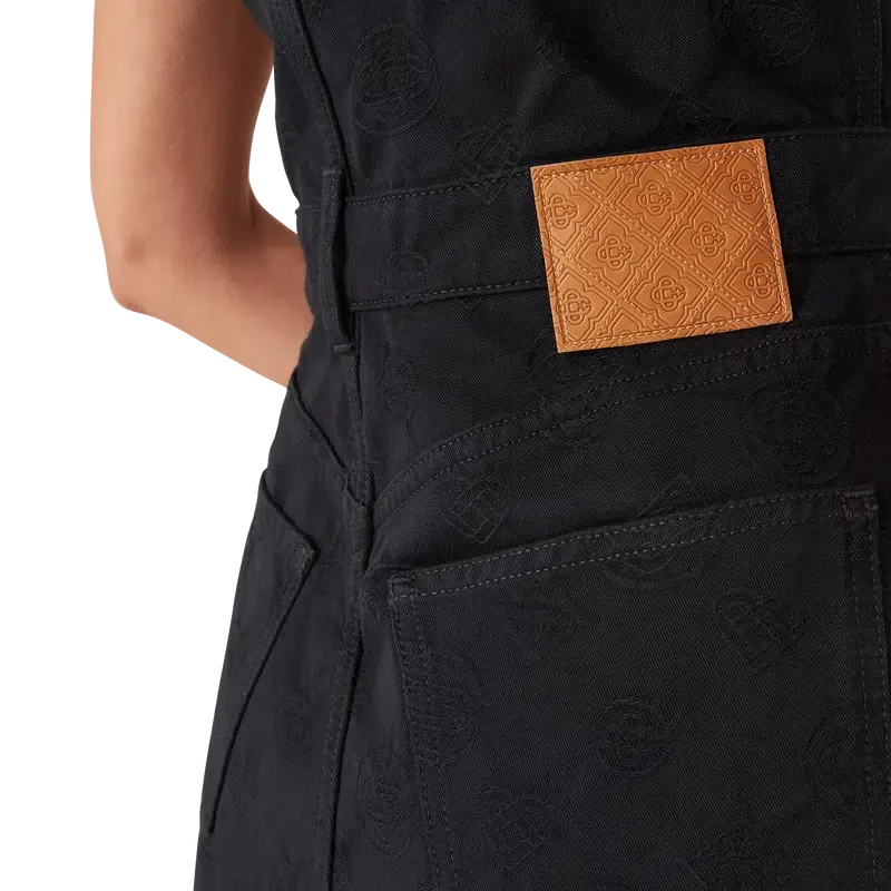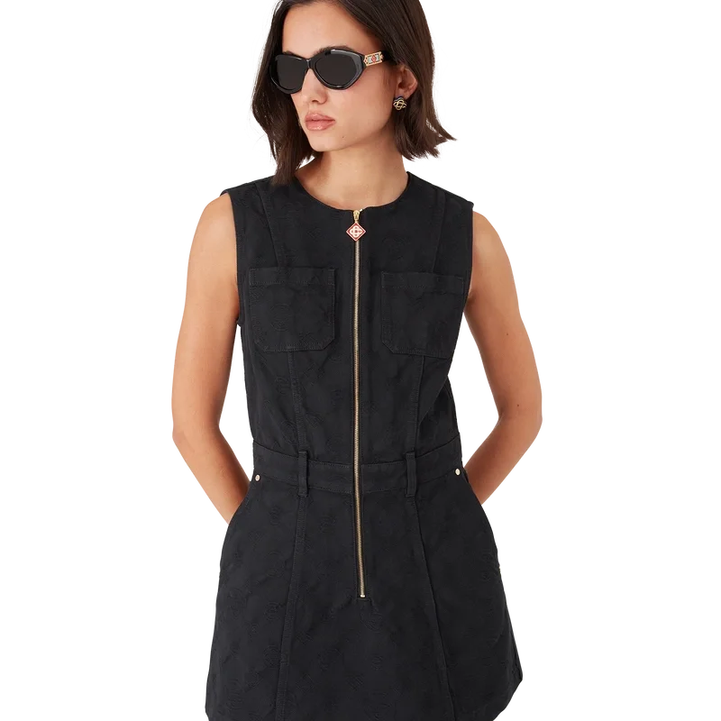De Denim Monogram Zip Jurk is een mouwloze, A-lijn mini-jurk met de Honeydew-logoprint van dit seizoen. Dit patroon verschilt van onze andere monogrammen, omdat het unieke vormen combineert tot een samenhangend patroon. Het is meer een op iconen gebaseerd ontwerp.