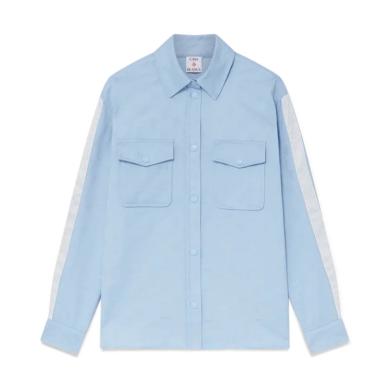 Het blauwe Monogram-overhemd met lange mouwen is een klassiek ontwerp met de iconische Monogram-print van het huis. Afgewerkt met knoopsluiting, een puntkraag, borstzakken en zijden panelen langs de mouwen.