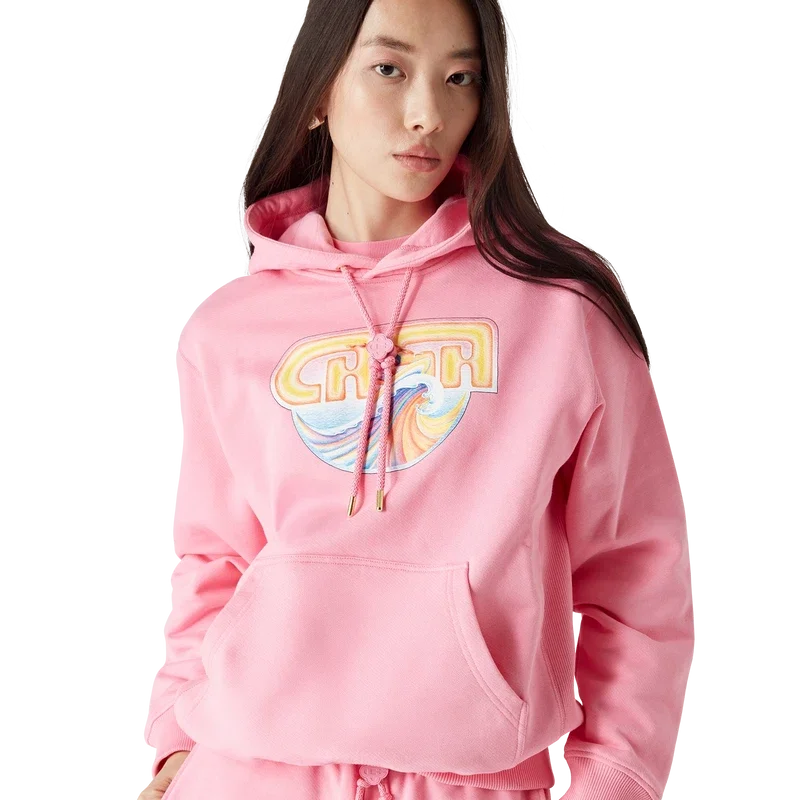 Het Casa Surf-sweatshirt met capuchon is een model met lange mouwen en print, vervaardigd van biologisch katoen en voorzien van kenmerkende kunstwerken geïnspireerd op vintage, door de zon verbleekte surfplanken uit de jaren ’70. Afgewerkt met een capuchon met trekkoord en een Cc-logo-knop, geribde manchetten en zoom.