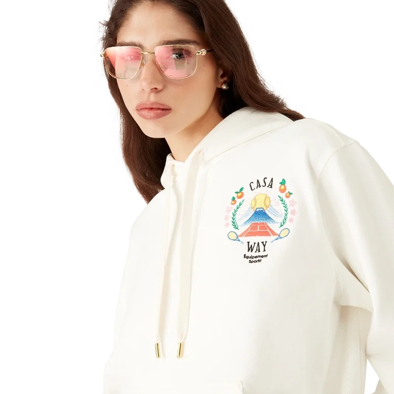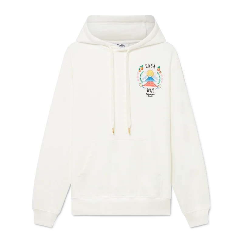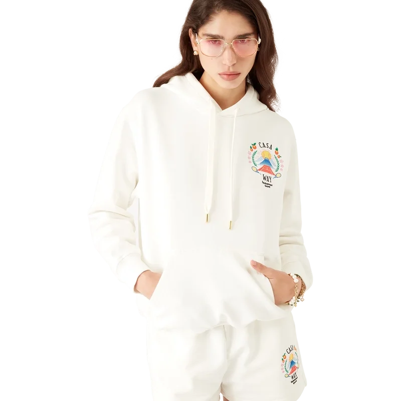 Het Casa Way Mountain-sweatshirt met capuchon is een ontwerp met lange mouwen, vervaardigd van biologisch katoen en voorzien van de seizoensgebonden kunst van het huis, opnieuw geïnterpreteerd voor dit seizoen.