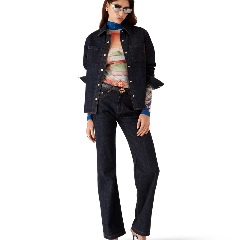 Het Raw Denim Overhemd is een ontwerp met lange mouwen, vervaardigd uit katoenen denimstof. Afgewerkt met borstzakken, een puntkraag, knoopsluiting, vergulde hardware met merklogo, een boxplooi aan de achterkant en een geborduurd CC-logo. Bedoeld om te dragen met de bijpassende denimjeans.