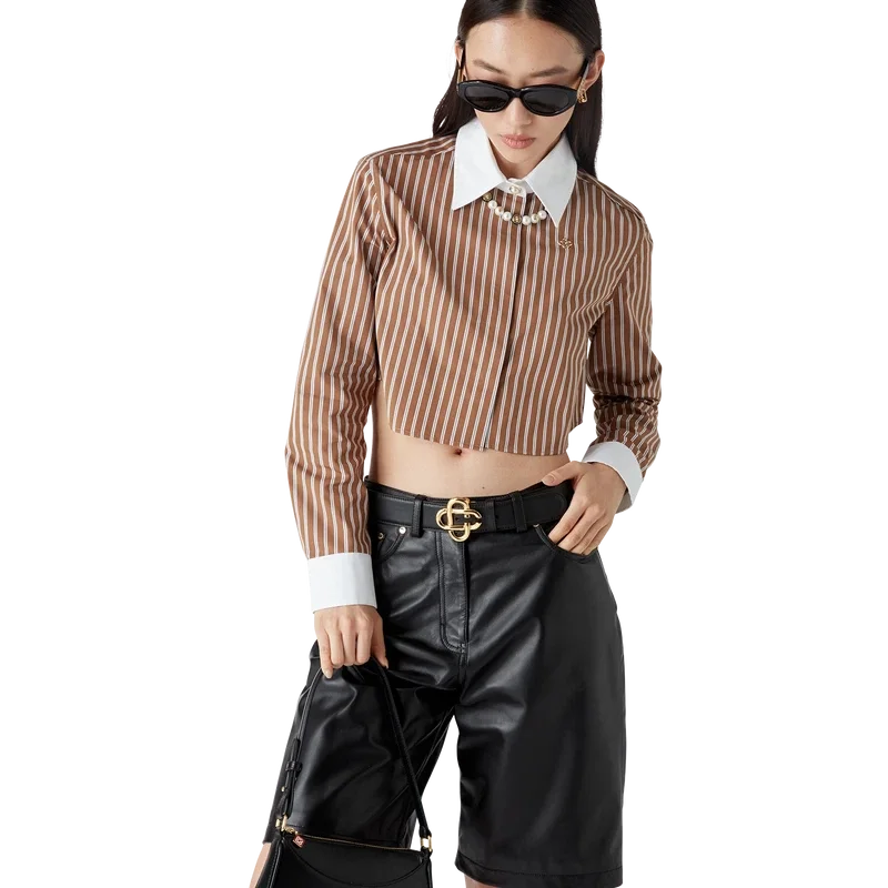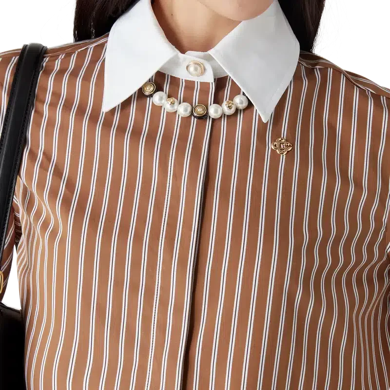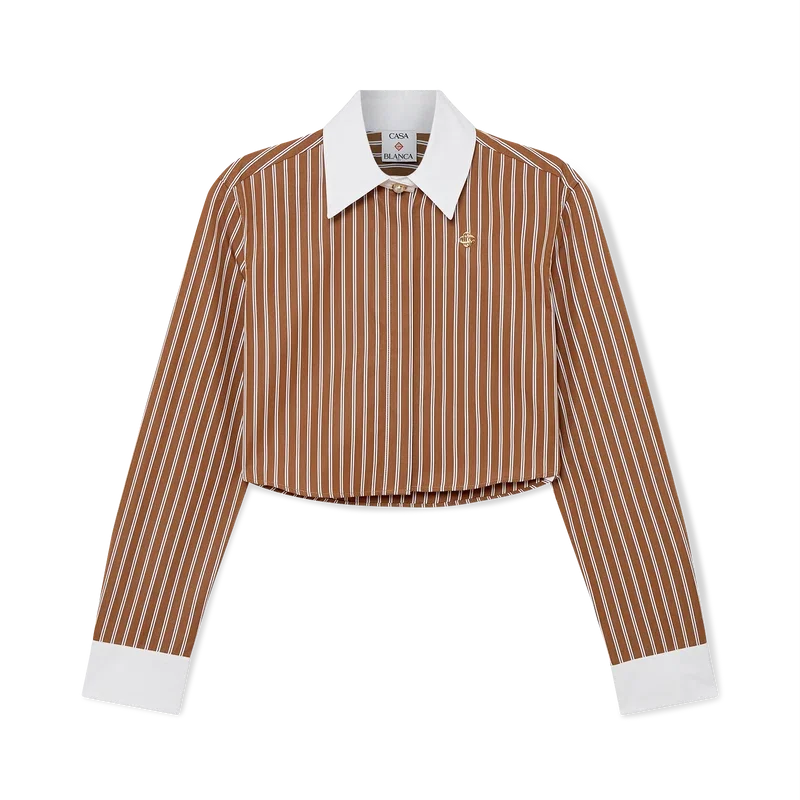 Het gestreepte cropped overhemd met lange mouwen is een kort model, vervaardigd van katoen Barra-stof. Afgewerkt met knoopsluiting, in elkaar grijpende Cc-logo Corozo-knopen, kenmerkende parelknop met gouden rand bij de kraag, contrasterende witte puntkraag en manchetten en een afgeronde zoom.