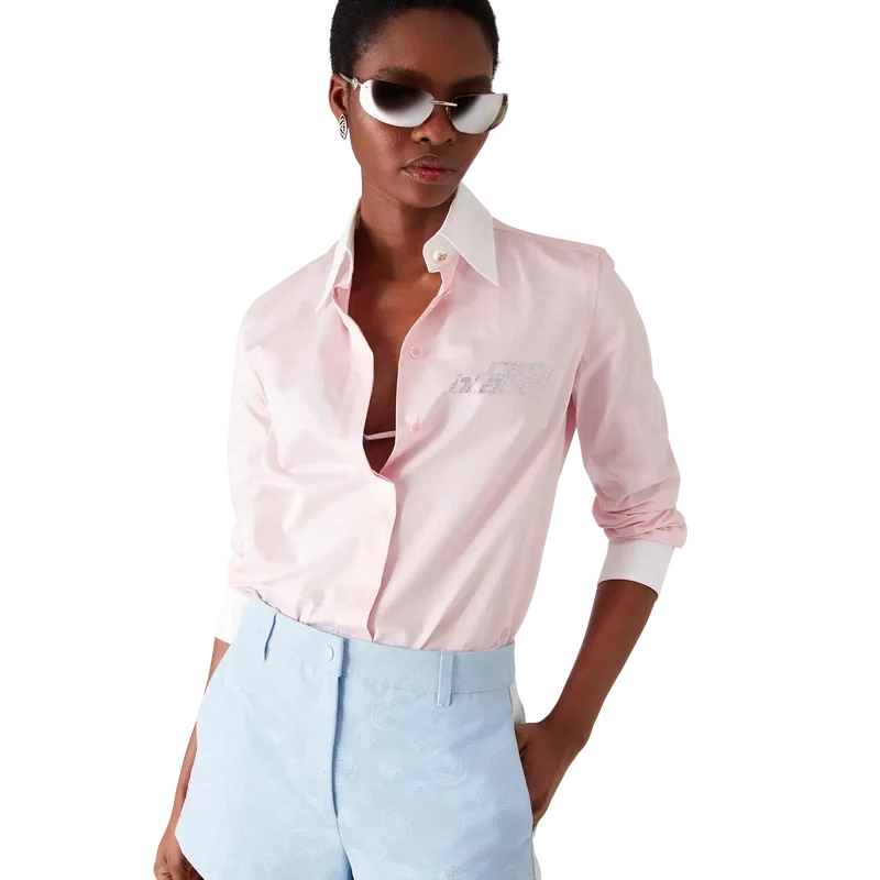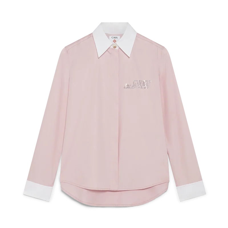 Het Crystal-overhemd met lange mouwen is een getailleerd ontwerp versierd met een kristallen logo-applicatie. Afgewerkt met contrasterende witte manchetten en een puntkraag, een verborgen knoopsluiting, Corozo-knopen met het Cc-logo en parelknopen met het Cc-logo bij de kraag en manchetten.