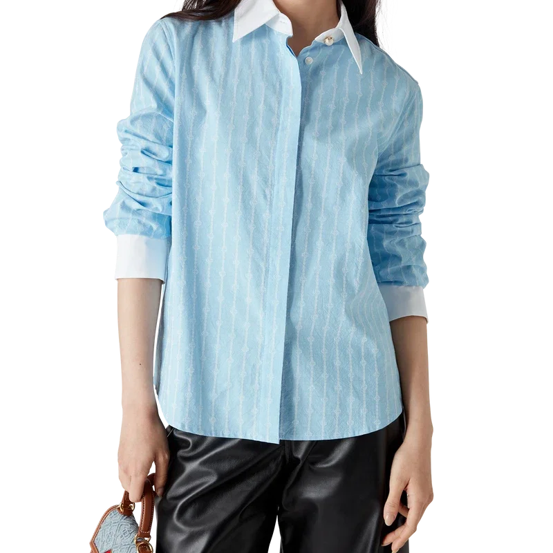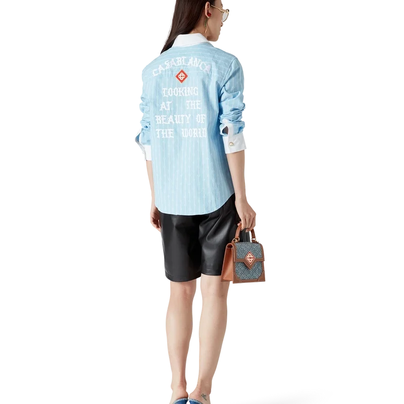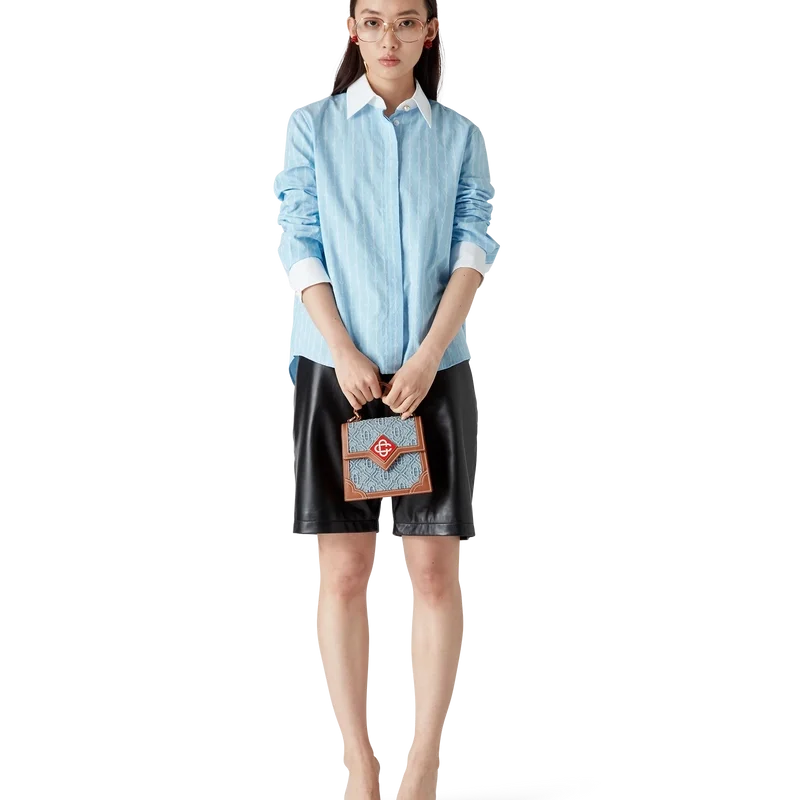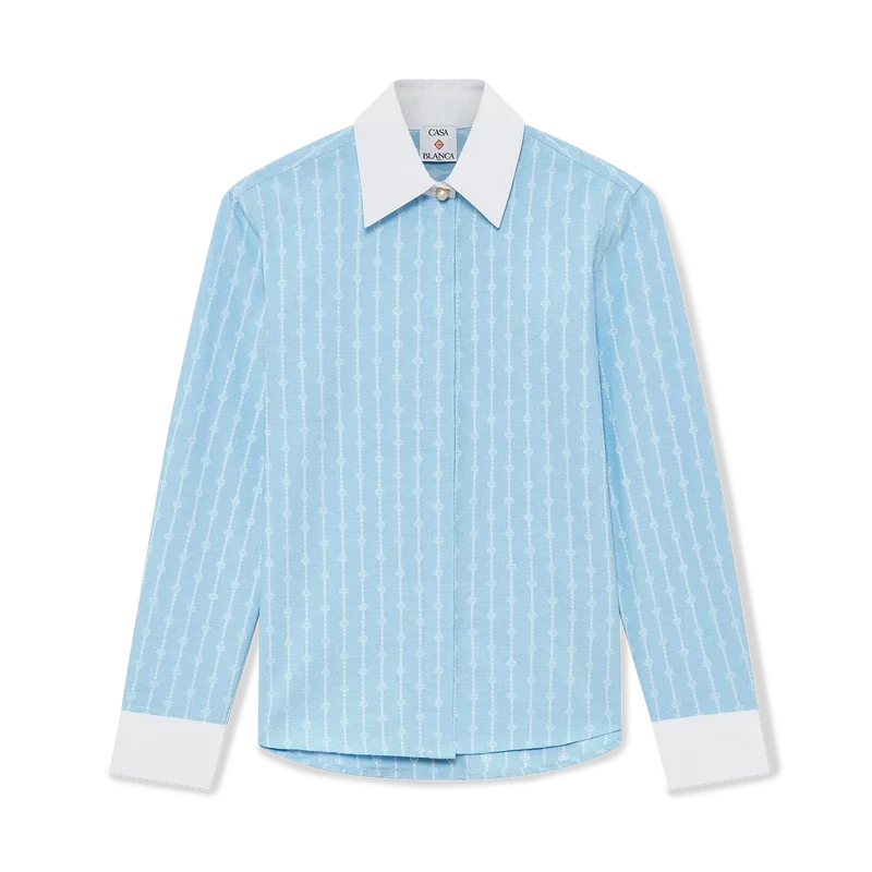 Het Laurel-overhemd met lange mouwen en krijtstreep heeft een getailleerd ontwerp en is vervaardigd van katoenjacquard. Afgewerkt met contrasterende witte manchetten en een puntkraag, een verborgen knoopsluiting met in elkaar grijpende Cc-logo Corozo-knopen en een afgeronde zoom.