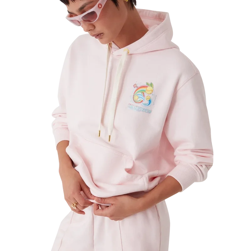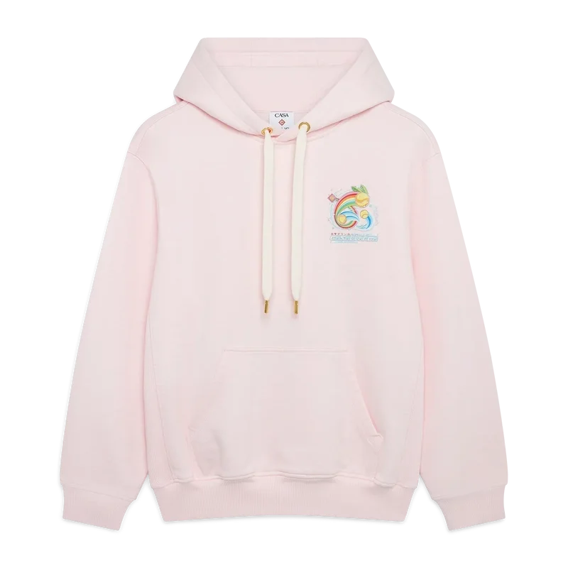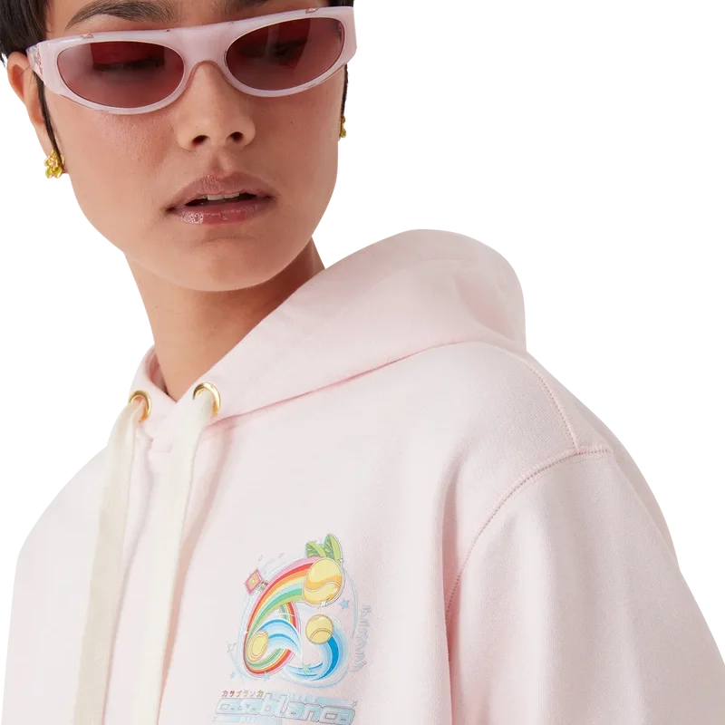 De Manga Tennis Ball Hoodie is een sportkledingontwerp met lange mouwen en borduursels, voorzien van de kunstwerken van dit seizoen die de wereld van Kawaii en Manga verkennen. Het speelt met de iconografie van Casablanca en gebruikt tennisballen als sinaasappels voor een leuke twist. Afgewerkt met een capuchon, trekkoordsluiting, een kangoeroezak en geribde manchetten en zoom.