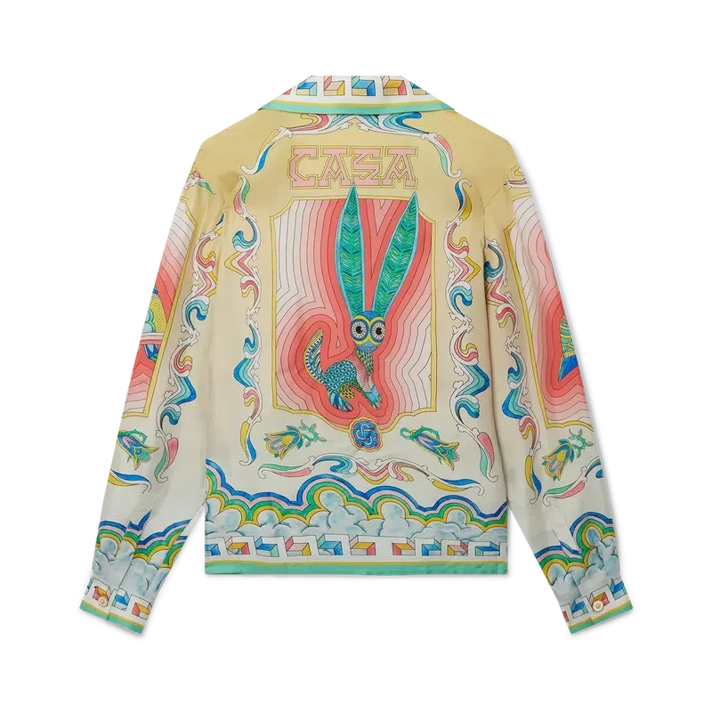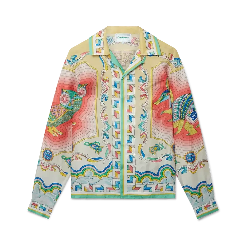 Het Souvenir zijden overhemd met Cubaanse kraag is een model met lange mouwen en een gedetailleerde print, geïnspireerd op het werk van de Mexicaanse kunstenaar Pedro Linares. De fantastische wezens zijn hier een uitdrukking van een hallucinante reis door het dierenrijk. Het overhemd van 100% zijde is ontworpen met een losse pasvorm en de Cubaanse kraag is bedoeld om open gedragen te worden.