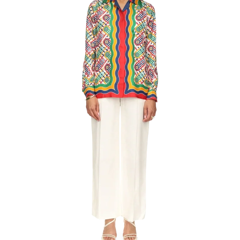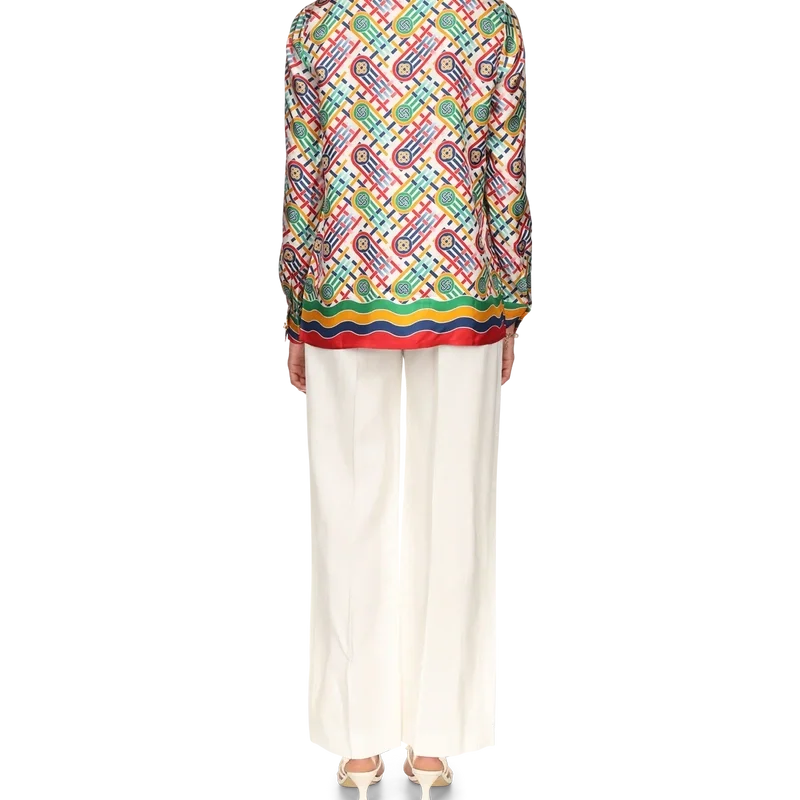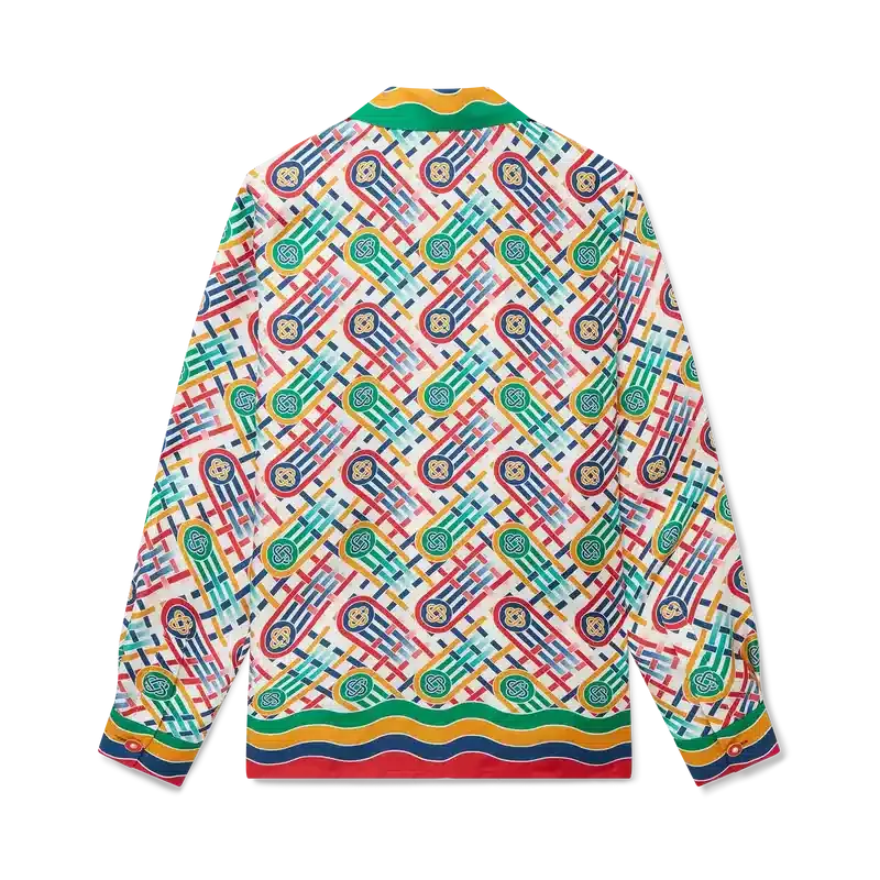 Tennis Monogram zijden overhemd met lange mouwen voor dames, voorzien van het kenmerkende artwork van het huis, opnieuw geïnterpreteerd voor de exclusieve Nordstrom-capsulecollectie, gericht op moderne, door tennis geïnspireerde athleisure.