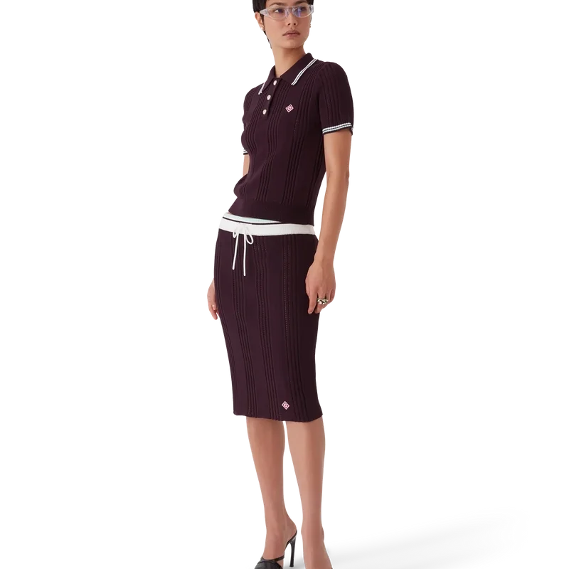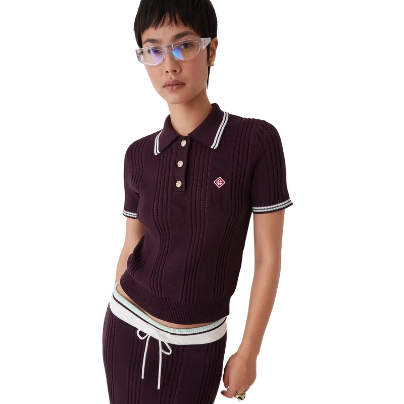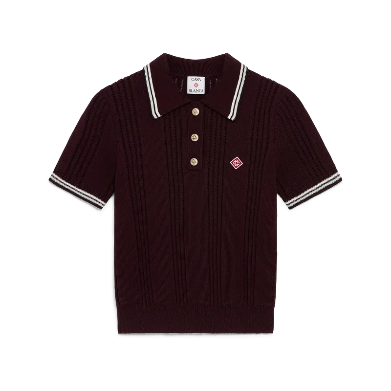 Het katoenen gebreide Polo-shirt met korte mouwen is een klassiek ontwerp met het kenmerkende diamantlogo van het huis, vervaardigd uit katoen. Afgewerkt met een geribde kraag en manchetten, een elastische zoom, kenmerkende gouden parelknopen en gestreepte randdetails op de kraag en manchetten.