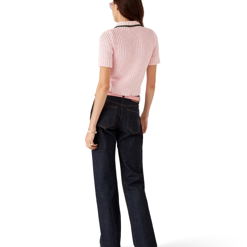 Het katoenen Moulina-poloshirt is een klassiek ontwerp, vervaardigd van Moulina-katoen. Afgewerkt met knoopsluiting, kenmerkende parelknopen met gouden rand, een geribde kraag, manchetten, zoom en knoopsluiting.