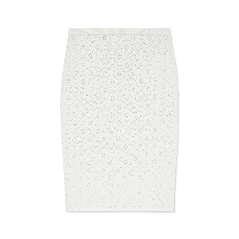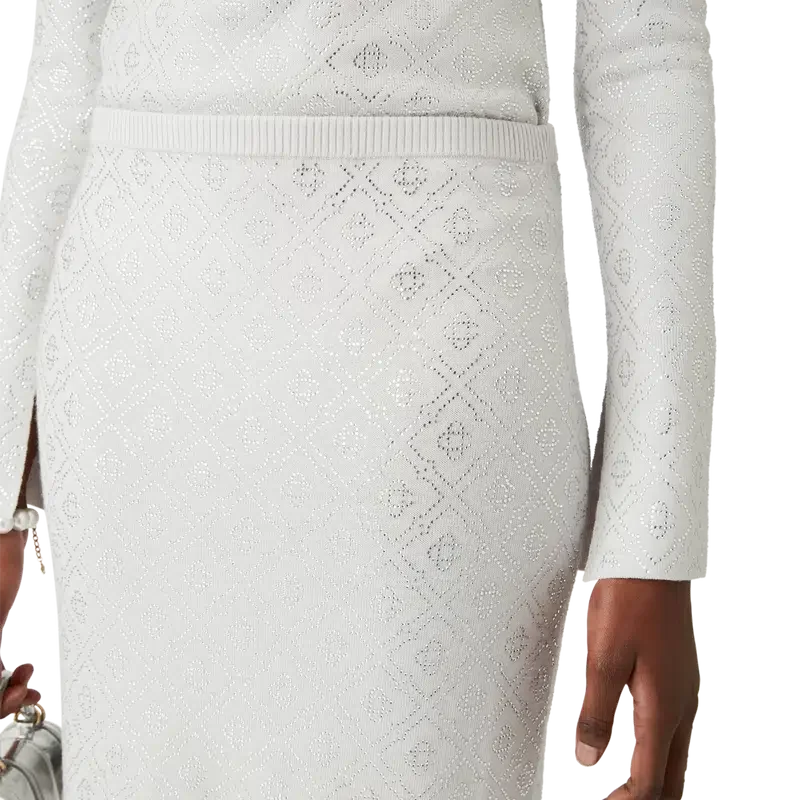 De Crystal Monogram gebreide rok is een halflange rok, vervaardigd van merinowol en voorzien van het Crystal Monogram van het huis. Afgewerkt met een elastische tailleband.
