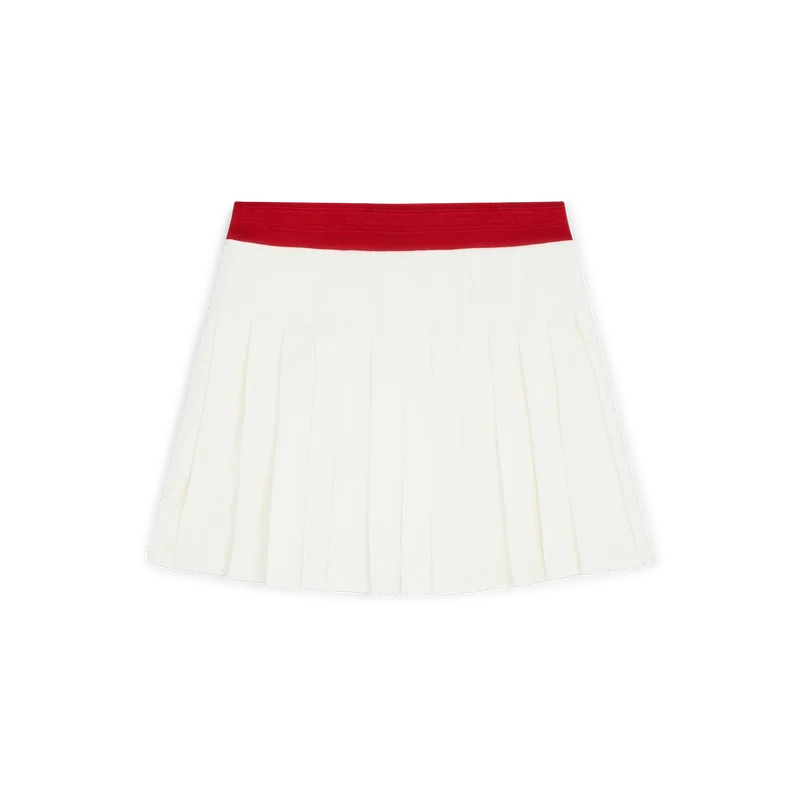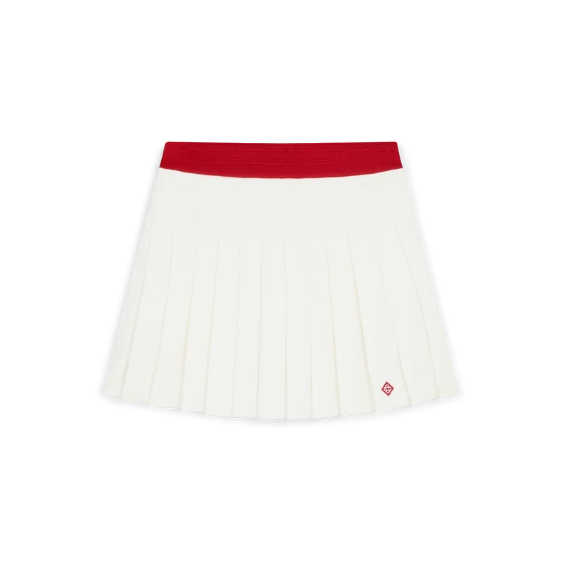 De geplooide skort is een mini-model met het kenmerkende diamantlogo van het huis, vervaardigd uit een polyestermix. Afgewerkt met een contrasterende tailleband, een nauwsluitende onderbroek, ritssluiting, een pas met plooien en een geplooide rok.