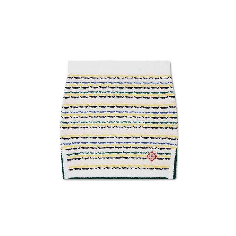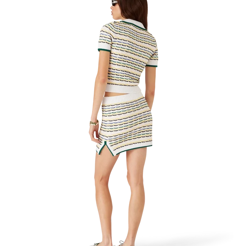 De katoenen mini-rok met tuck-steek is een kort model, vervaardigd van katoen. Afgewerkt met een geribde, elastische tailleband, zijsplitten en een zoom met contrasterende randdetails.