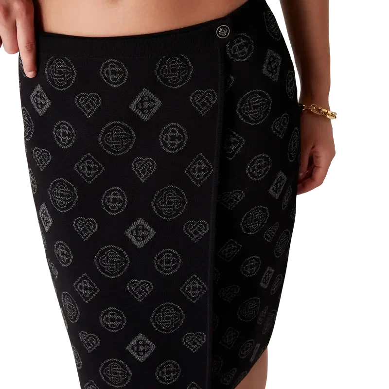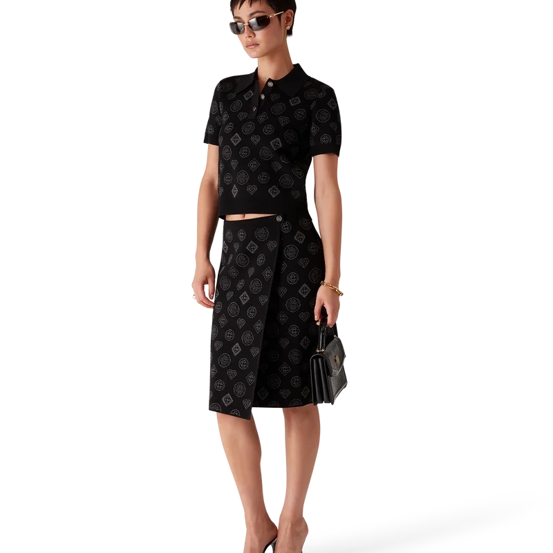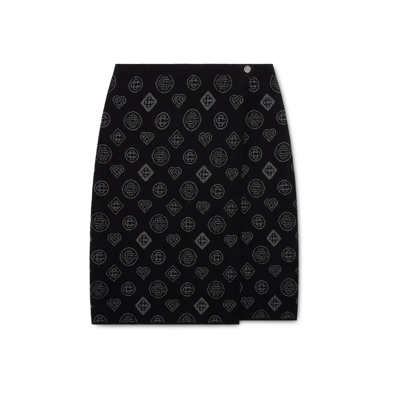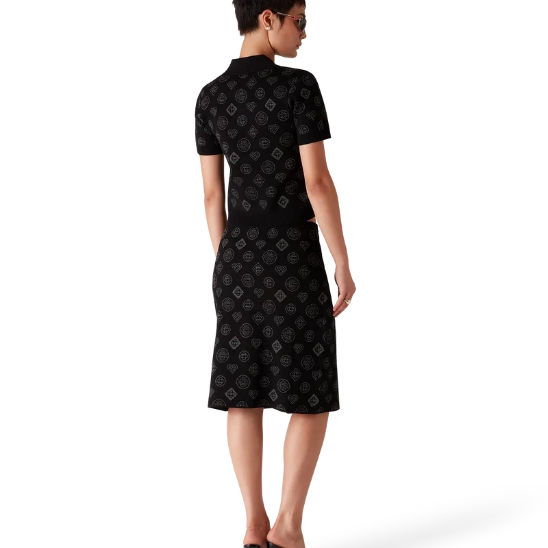 De City Jacquard-rok is een klassiek model van halflange lengte met het herhalende Honeydew-logo van het huis. Dit herhalende patroon verschilt van onze andere monogrammen, omdat het unieke vormen combineert tot een samenhangend geheel. Het is meer een op iconen gebaseerd ontwerp. Afgewerkt met een contrasterende ribboord, elastische tailleband en split aan de voorkant.