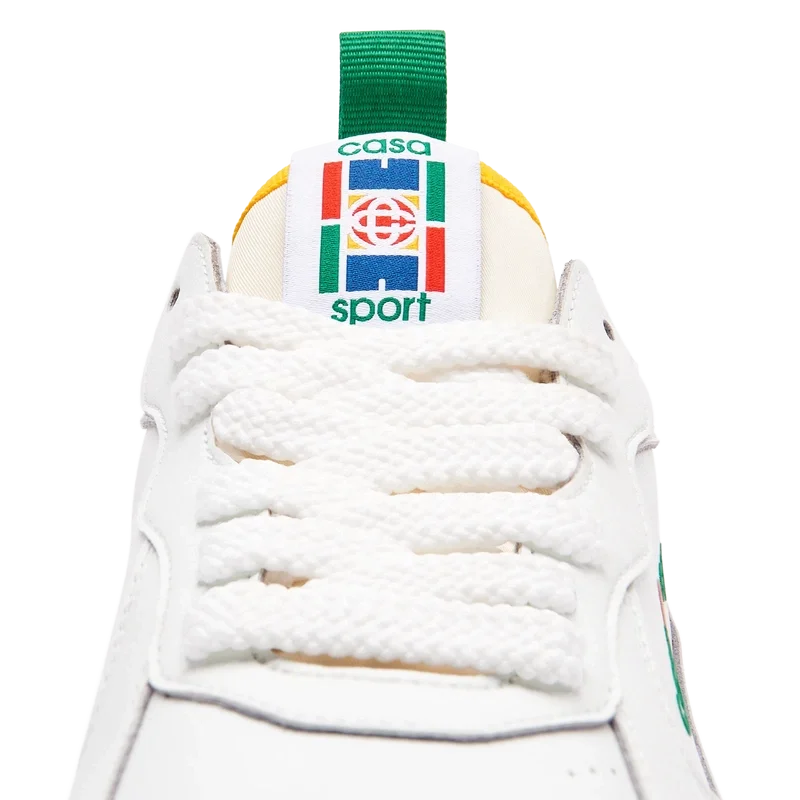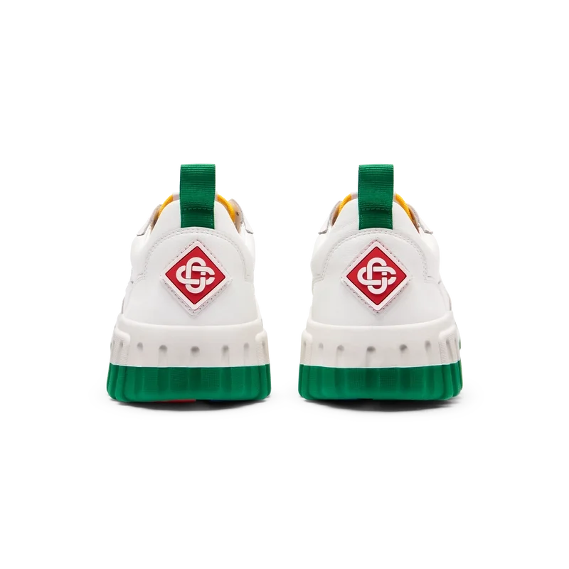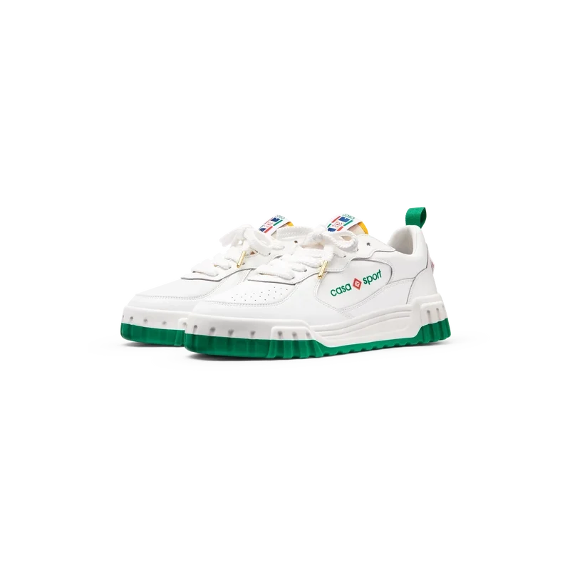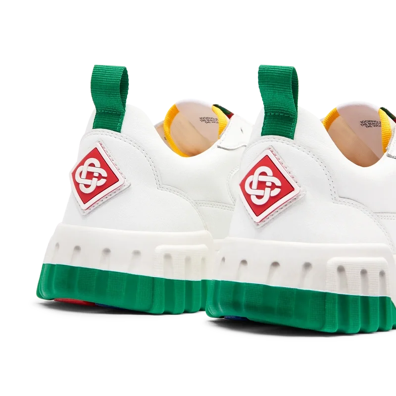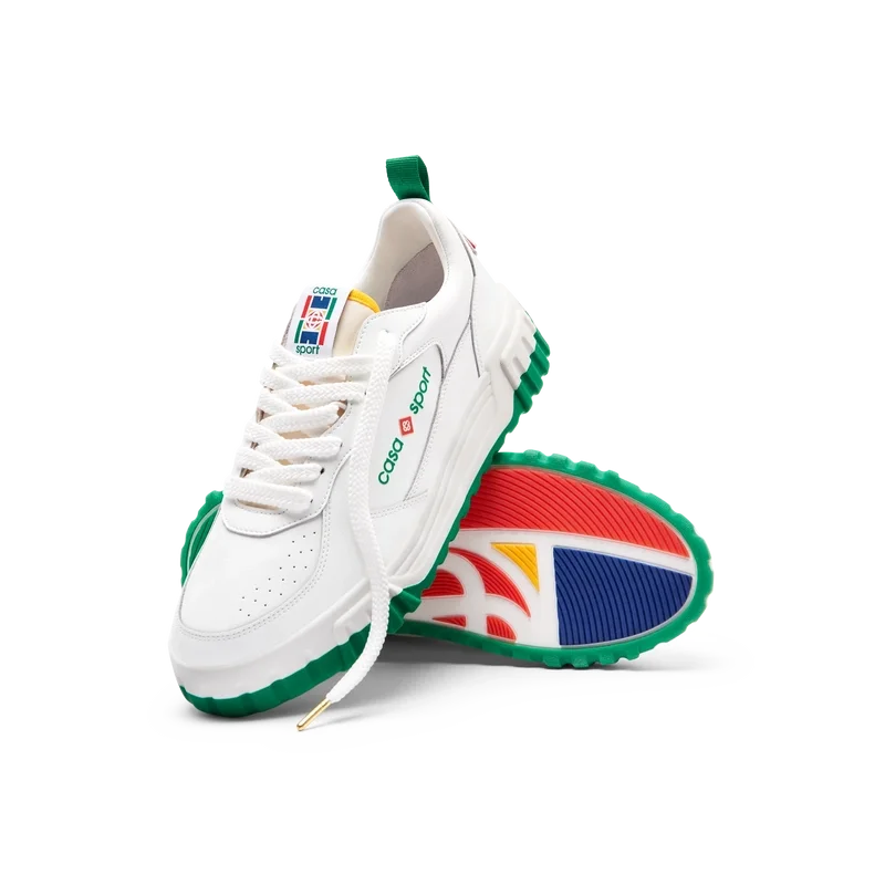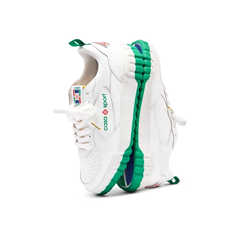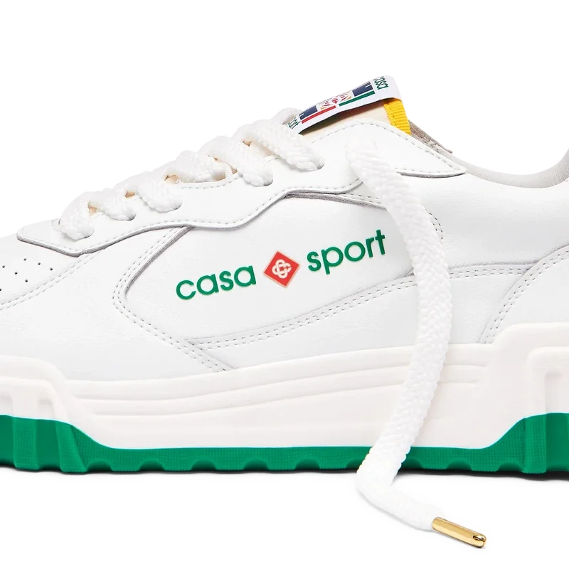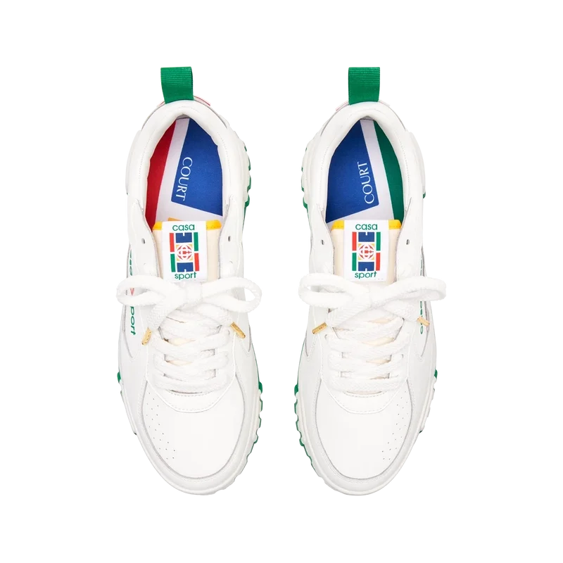 Het bovenwerk van de schoen is voorzien van geïntegreerde, vloeiende paneellijnen als knipoog naar de iconische silhouetten van de jaren 90. Het prominente Casa Sport-logo is overal duidelijk zichtbaar, inclusief het kenmerkende diamantmotief van het merk op de hiel, het siliconen woordmerk op de zijkant en het geweven tennisbaanmotief op het tonglabel en de binnenzool, waaraan de schoen zijn naam, de Court, te danken heeft.