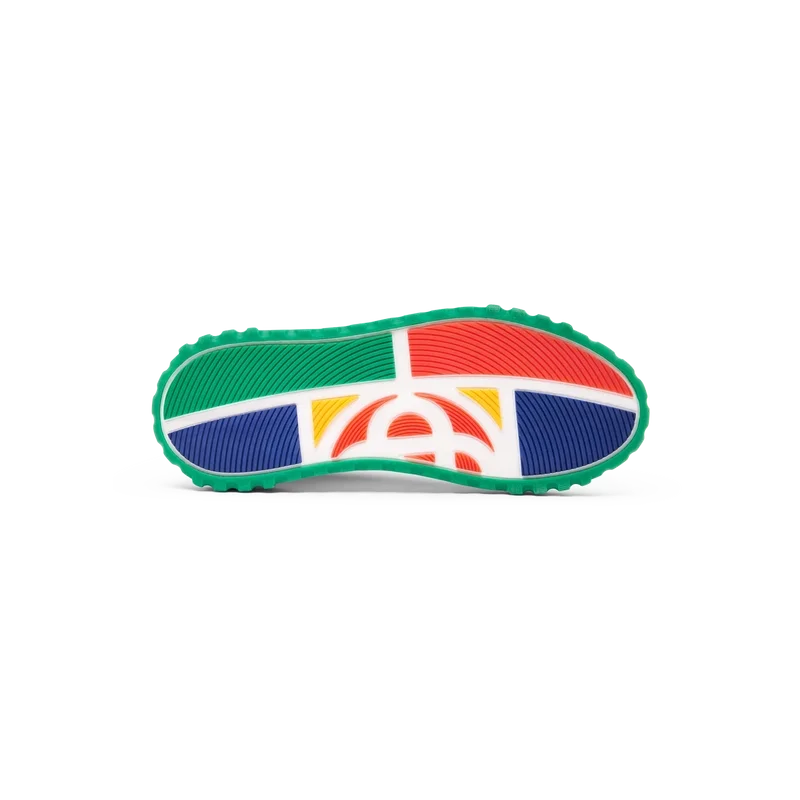 Het ontwerp van de Court Sneaker weerspiegelt de iconische silhouetten van de jaren 90. De kleuren op de rubberen zool zijn een combinatie van de verfijnde codes van tennis en klassieke architectuur en creëren een uniform kleurenpalet over de hele schoen, waarbij de nadruk ligt op primaire kleuren die worden gecompenseerd door tenniswit om een sportief kleurverhaal te creëren.