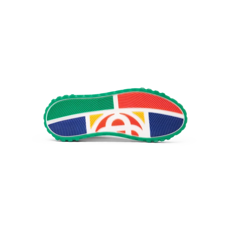 De vormtaal van de Court Sneaker weerspiegelt de iconische silhouetten uit de jaren 90. De kleuren die overal op de rubberen zool terugkomen, zijn een combinatie van de verfijnde codes van tennis en klassieke architectuur en creëren een uniform kleurenpalet over de hele schoen, waarbij de nadruk ligt op primaire en secundaire kleuren, gecompenseerd door tenniswit om een sportgericht kleurverhaal te creëren.