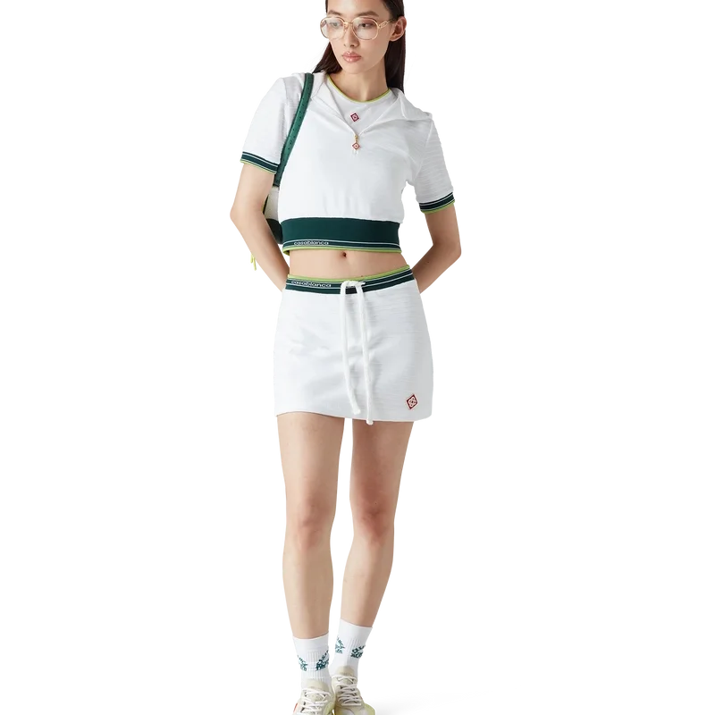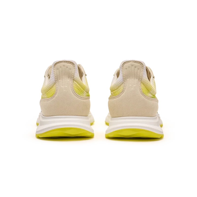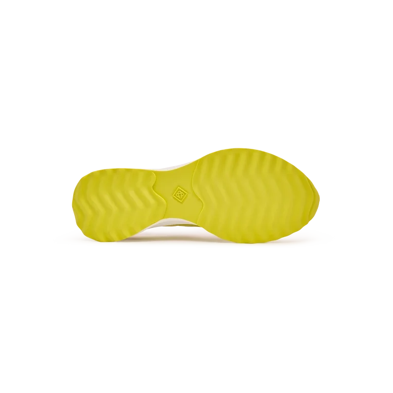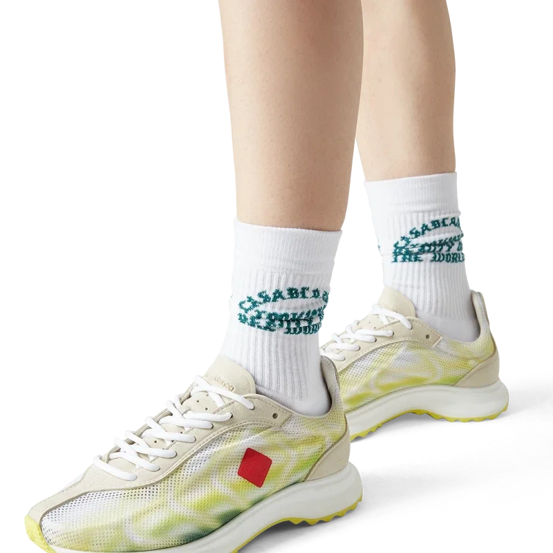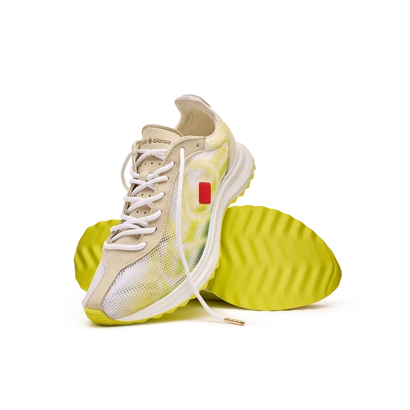 De Stade Green sneaker voor dames ontleent zijn naam aan de oude Griekse maat voor de afstand van een hardloopwedstrijd, wat later het woord voor stadion werd. Het model is geïnspireerd op prestatiegerichte hardloopschoenen en is een overbrenging van moderne technologie vanuit een oude traditie, waarbij de codes van het moderne hardlopen met het lichtgewicht mesh en de glow-print bijdragen aan de moderniteit. De zool heeft gebeeldhouwde rondingen, een verwijzing naar onze Atlantis-schoen en een vast onderdeel van het Casablanca-ontwerp.