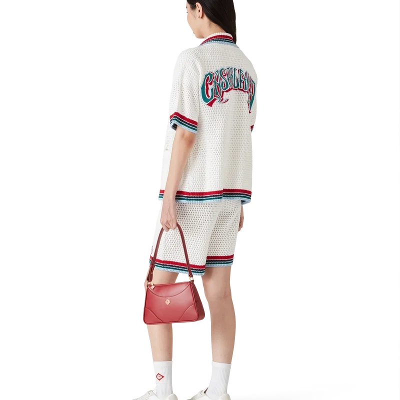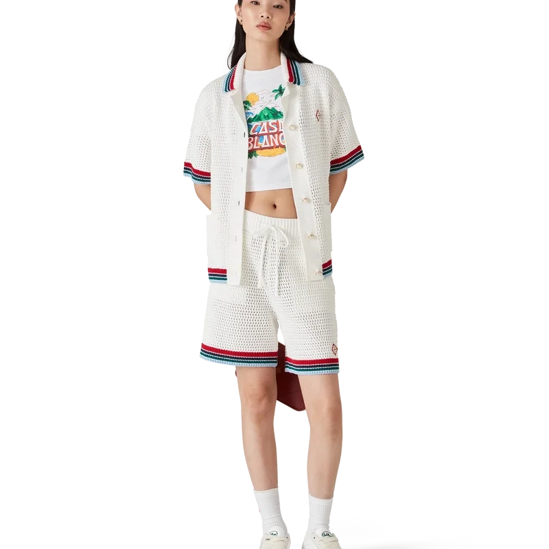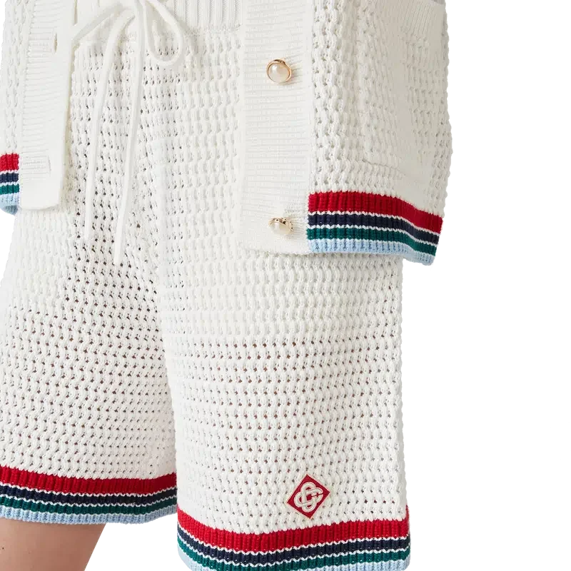 De Gothic Crochet Shorts zijn een zacht gestructureerd ontwerp, vervaardigd uit gebreide katoenen stof, voorzien van het kenmerkende diamantlogo van het huis. Afgewerkt met een geribde, elastische tailleband met trekkoord, zijzakken en contrasterende gestreepte randdetails aan de zoom.