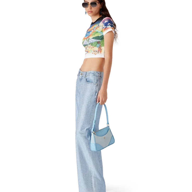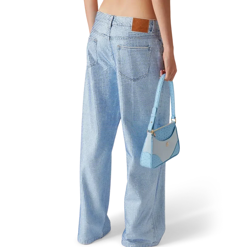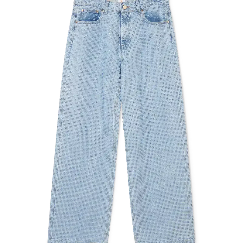 De jeans met kristallen versiering heeft een rechte pijp, is gemaakt van katoen en is voorzien van hotfix-kristallen in een all-over patroon. Afgewerkt met vergulde details, riemlussen, voor- en achterzakken, een leren patch met merklogo en een ritssluiting.