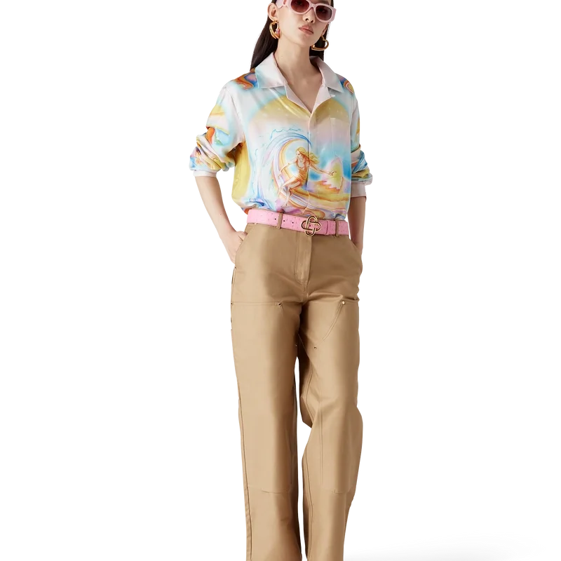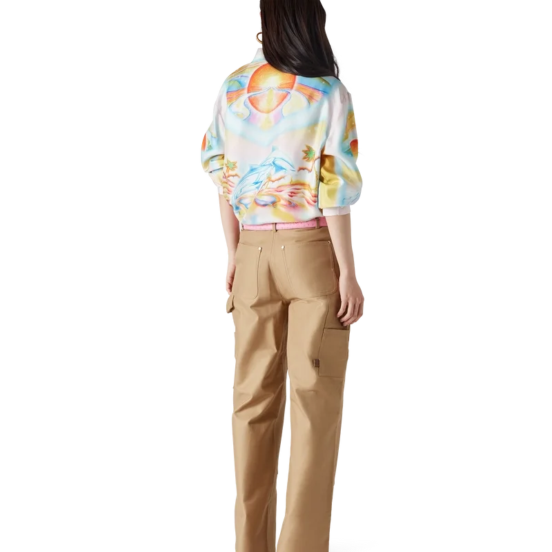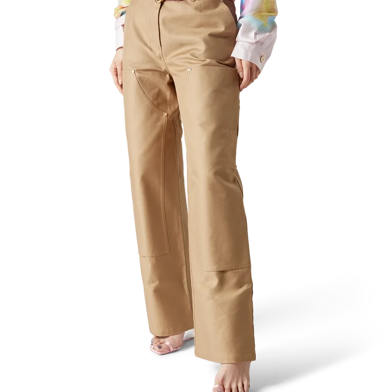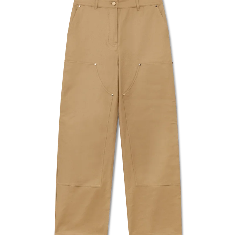 De katoenen werkbroek heeft een recht model en is gemaakt van katoenen drillstof. Afgewerkt met een tailleband, riemlussen, stoffen patchdetails op de dijen, voorzakken, een opgestikte achterzak en vergulde merkhardware.