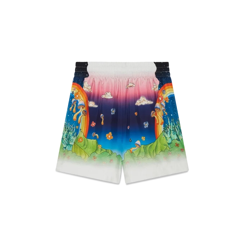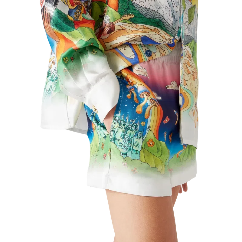 De La Musique zijden Shorts heeft een all-over print en is gemaakt van zijden twill met het seizoensontwerp dat een ode is aan Bootsy Collins en iconische funkplaten uit de jaren 70. Afgewerkt met een elastische tailleband, een voering, zijzakken in de naad en een opgestikte achterzak.