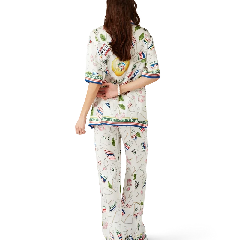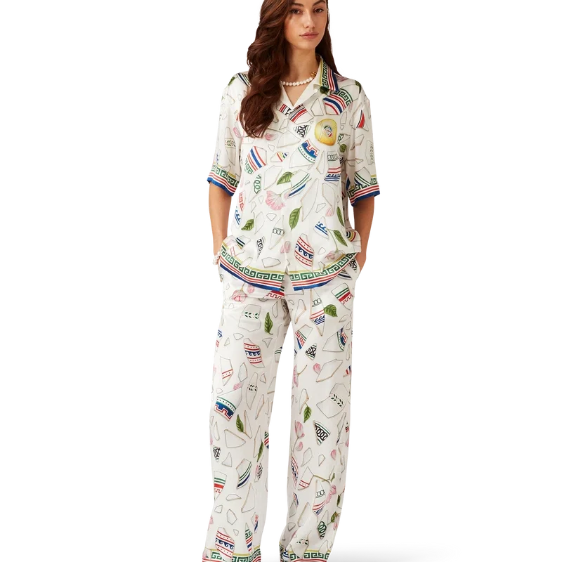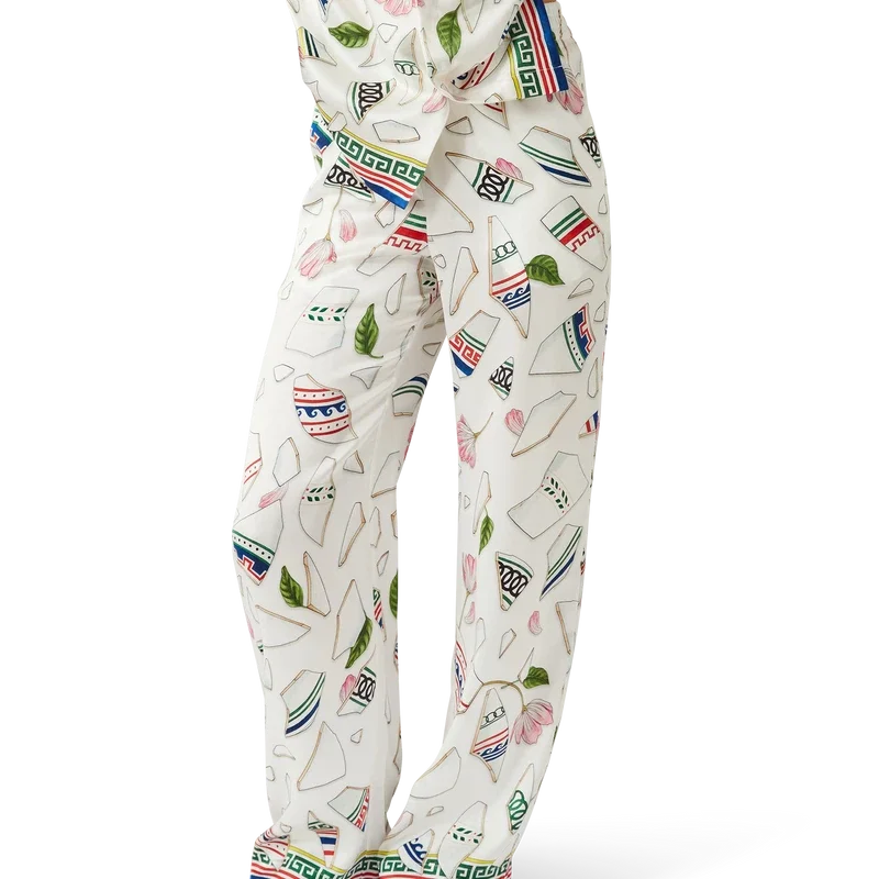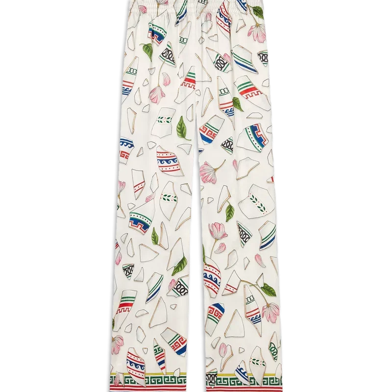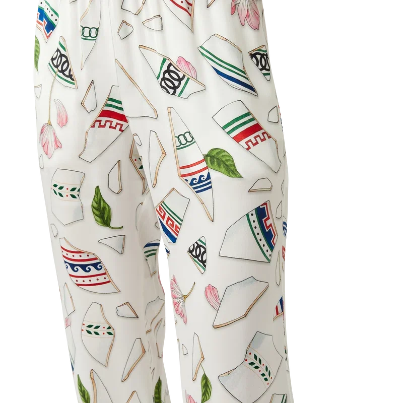 De Le Vase Brise zijden broek heeft een all-over print en is vervaardigd uit zijden satijn met de seizoensprint van het huis, geïnspireerd door de voortdurende studie van de klassieke schoonheid en hedendaagse allure van het oude Griekenland. Afgewerkt met een elastische tailleband, steekzakken in de zijkanten, een opgestikte zak aan de achterkant, een trekkoordsluiting en op Griekse sleutels geïnspireerde details aan de zoom.