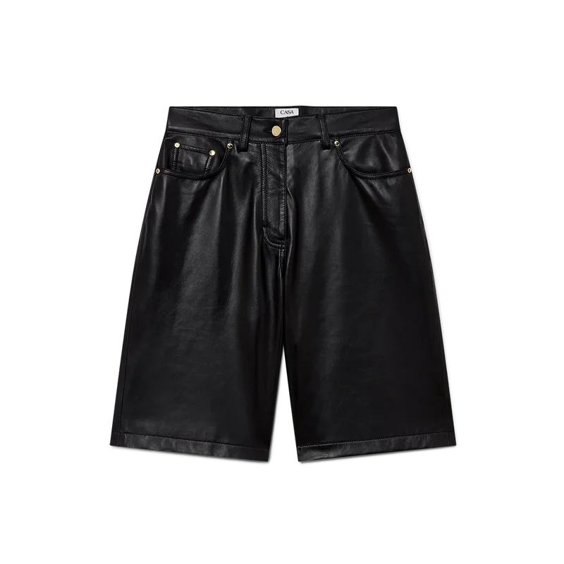 De leren skater shorts hebben een knielengte en een relaxte pasvorm en zijn gemaakt van lamsnappa. Afgewerkt met een A-lijn zoom, een tailleband, riemlussen, vergulde hardware, voorzakken, achterzakken en een ritssluiting.