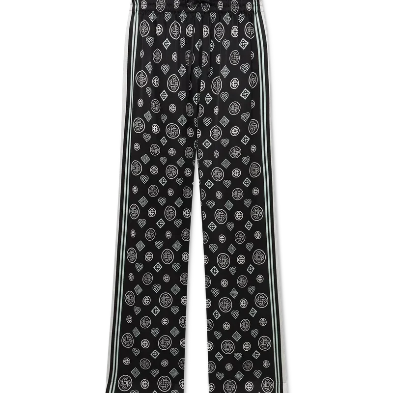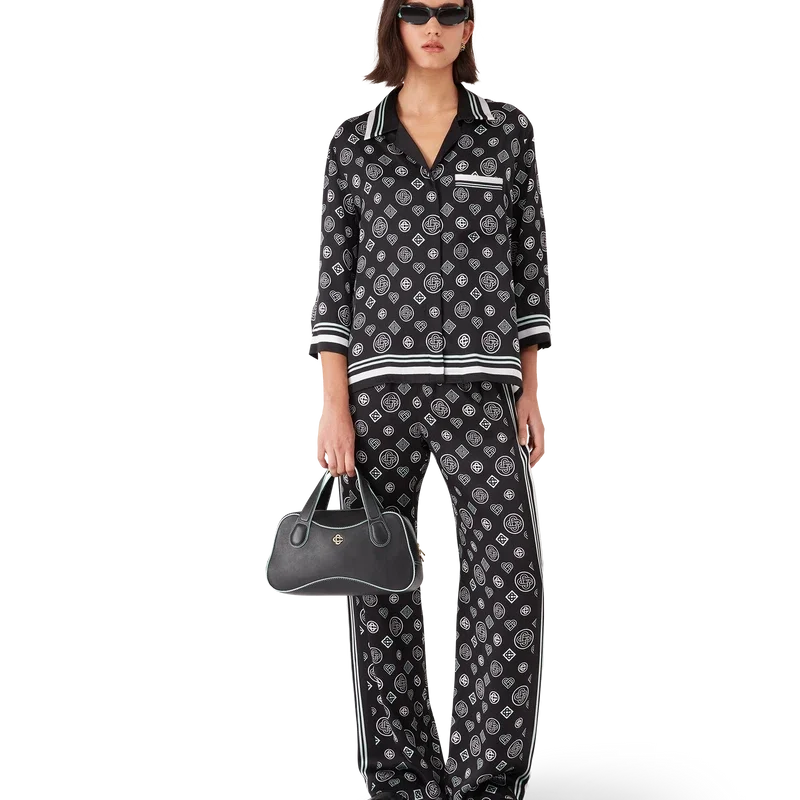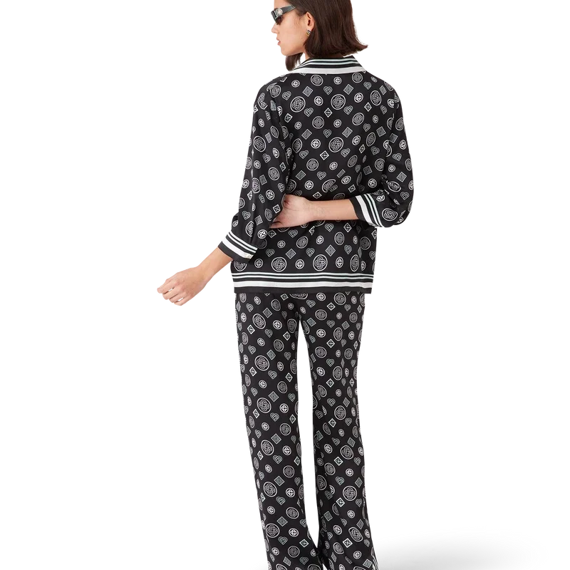 De Monogram zijden satijnen pyjamabroek heeft een all-over print met het Honeydew-logo van dit seizoen. Dit patroon verschilt van onze andere monogrammen, omdat het unieke vormen combineert tot een samenhangend geheel. Het is meer een op iconen gebaseerd ontwerp. Afgewerkt met een elastische tailleband, trekkoordsluiting, zijzakken in de naad en zwart-witte streepdetails aan de zijkanten.