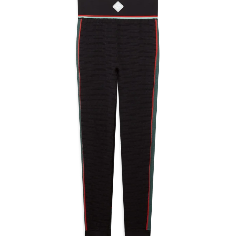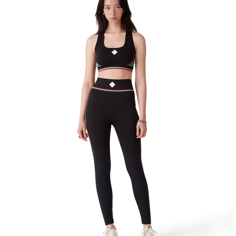 De naadloze sportlegging is een lang model geïnspireerd op sportkleding, vervaardigd uit een naadloze, geribde stretchstof. Afgewerkt met een elastische tailleband met het diamantlogo van het huis en paneeldetails.