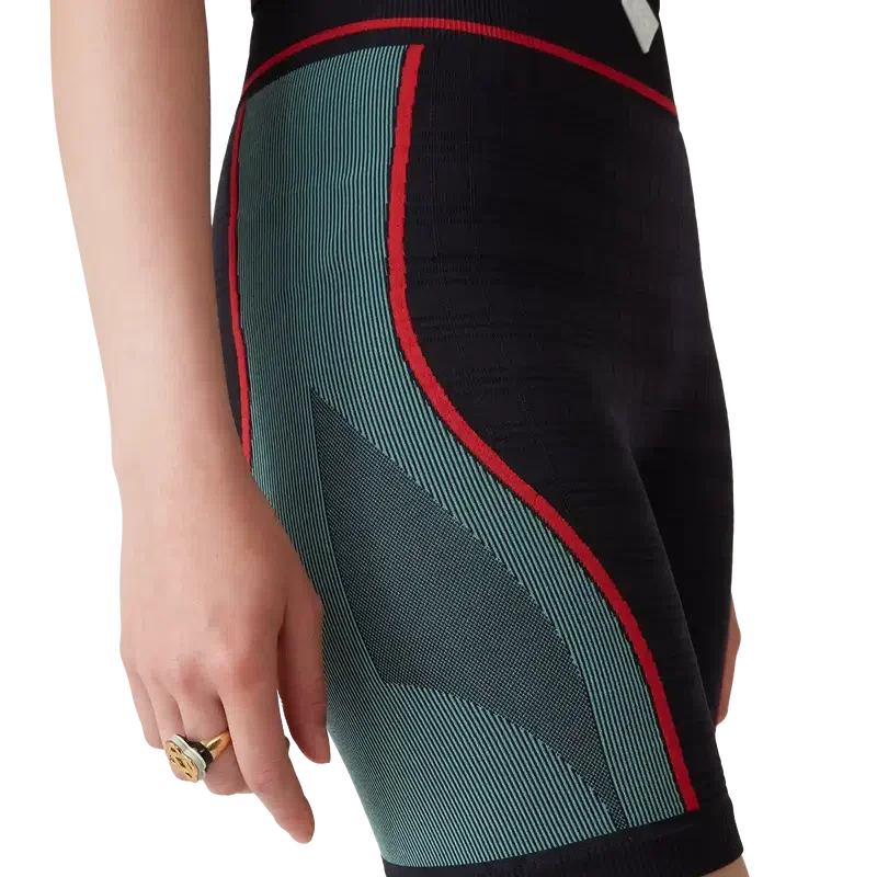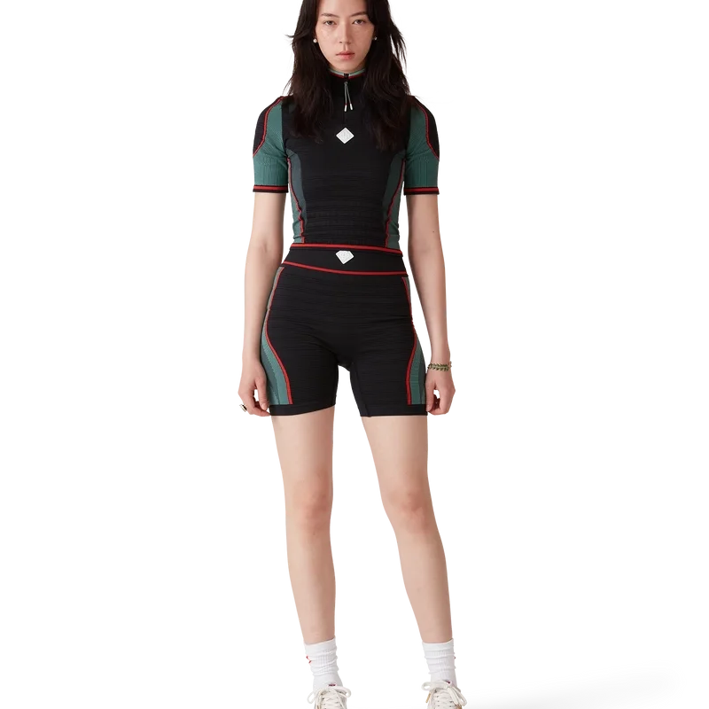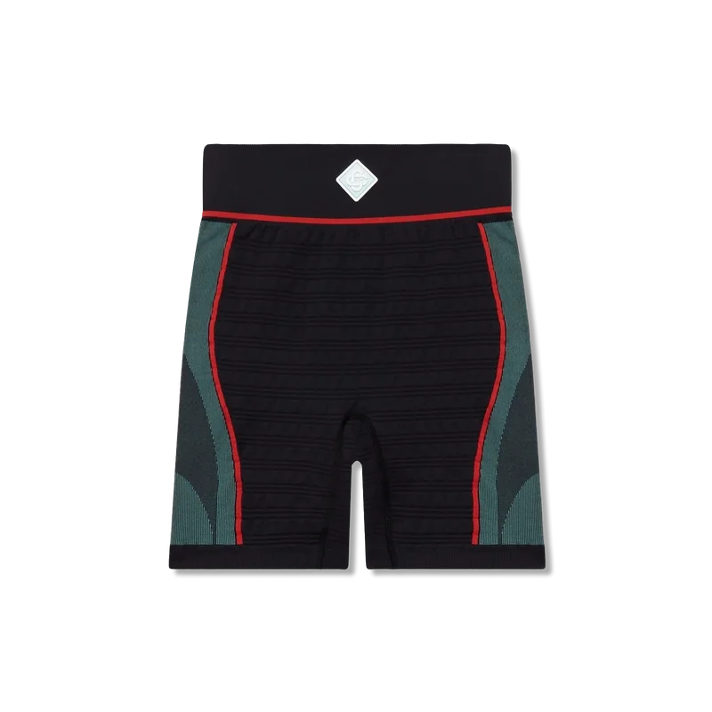 De naadloze sportshort is een kort model geïnspireerd op sportkleding, vervaardigd uit een naadloze, geribde stretchstof. Afgewerkt met een elastische tailleband met het diamantlogo van het huis en paneeldetails.