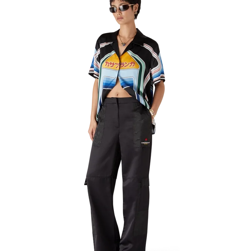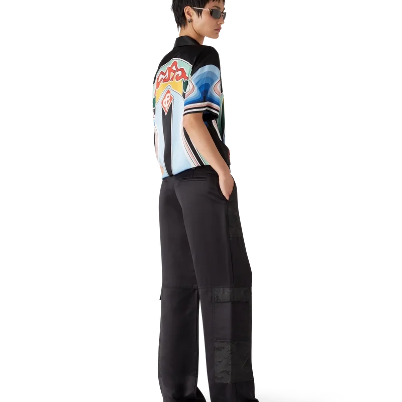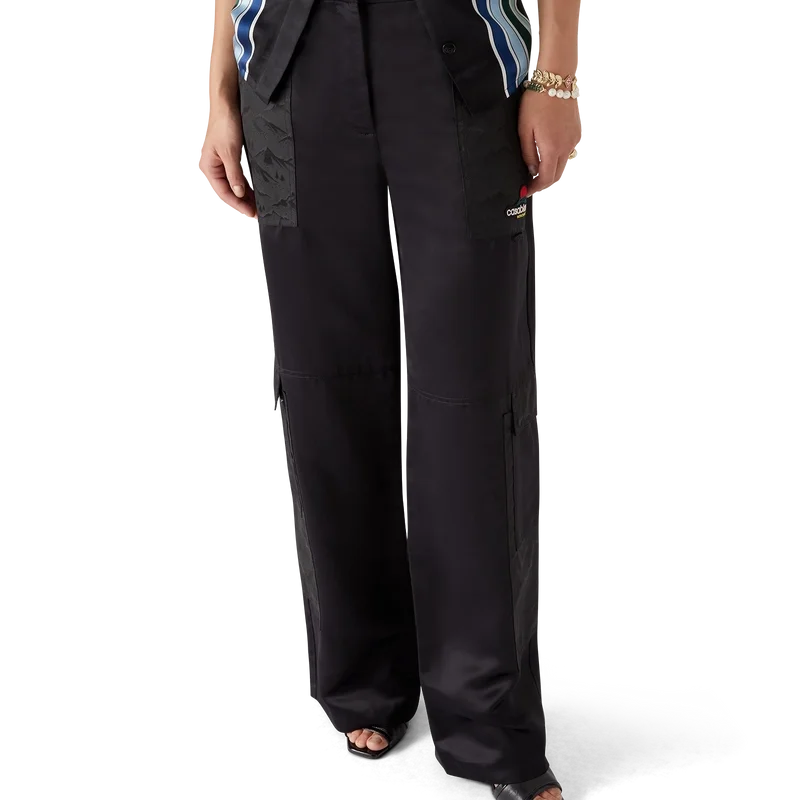 De nylon en satijnen Mountain Camo-cargobroek heeft een recht model en is voorzien van het kenmerkende Diamond Monogram van het huis. Afgewerkt met een paneel op elke dij, vergulde details, schuine voorzakken, opgestikte achterzakken, ritssluiting en riemlussen.