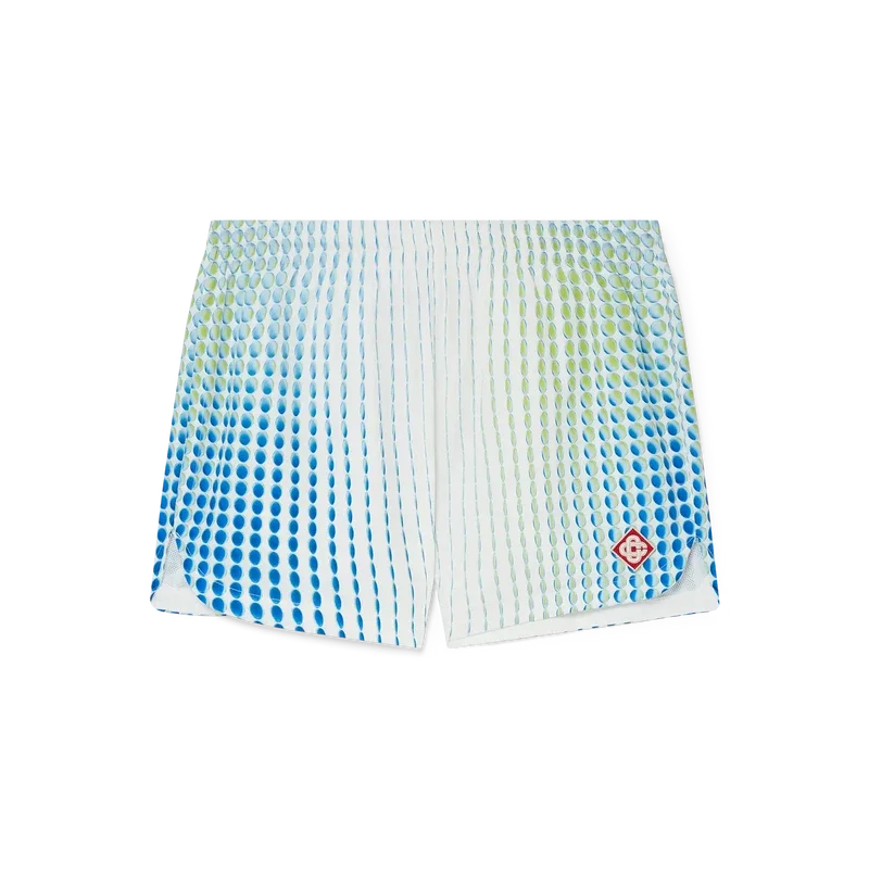 Deze bedrukte poly-taft-Shorts heeft een klassiek ontwerp met het kenmerkende diamantlogo van het huis en unieke illustraties die zijn gemaakt in samenwerking met Martin Naumann, bekend om zijn werk met kleurverlopen en textuureffecten. Afgewerkt met een elastische tailleband, een trekkoordsluiting, een voering, zijzakken en een afgeronde zoom.