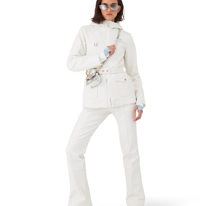 De skibroek is een verfijnd Apras-Sport-ontwerp, vervaardigd uit technische fleecestof in wit, geïnspireerd door de zachte texturen van het besneeuwde platteland van Japan. Waar ongerepte alpiene omgevingen en natuurlijke materialen een harmonieus ontwerp creëren.