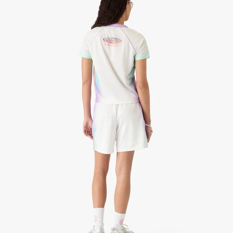 De mesh-voetbalshort met glazen kleurverloop heeft een verfijnd ontwerp, met de opvallende glazen kleurverloop-illustratie van dit seizoen, gemaakt in samenwerking met Martin Naumann, bekend om zijn werk waarin hij kleurverloop- en textuureffecten combineert met halftoon- en glasachtige effecten. Afgewerkt met een elastische tailleband, trekkoordsluiting, contrasterende biezen aan de zijkanten en zijzakken. Ontworpen om te dragen met het bijpassende voetbalshirt van mesh.
