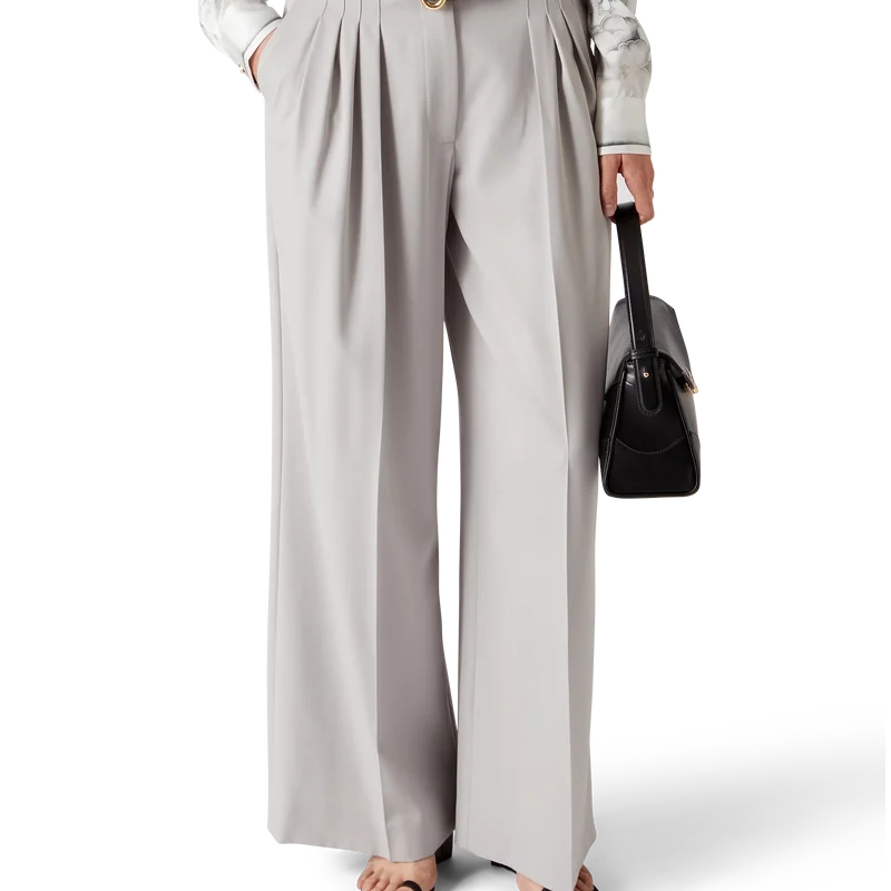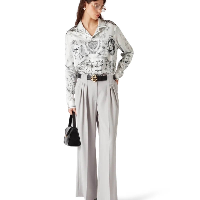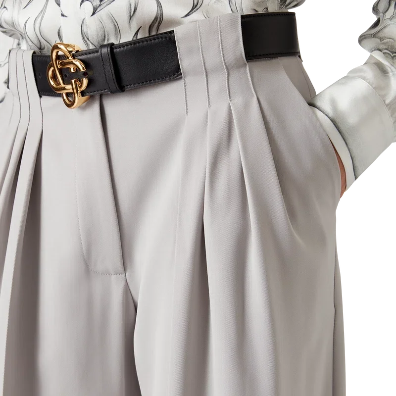 De wollen broek met drie plooien heeft een rechte pijp en is gemaakt van 100% scheerwol. Afgewerkt met een ritssluiting, drie plooien aan de voorkant, schuine voorzakken, een voering van katoenmix, paspelzakken aan de achterkant met platte Cc-logoknopen en riemlussen.
