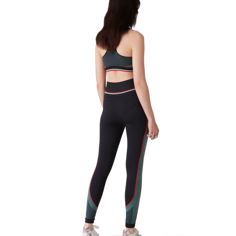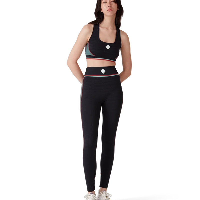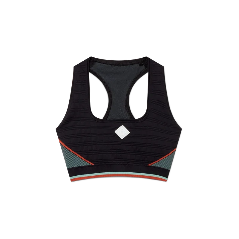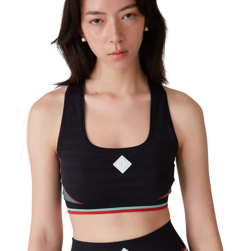 De naadloze sportbeha is een op sportkleding geïnspireerd ontwerp, vervaardigd uit een naadloze, geribbelde stretchstof. Afgewerkt met een elastische band, een racerback, voorzien van het diamantlogo van het huis in het midden en paneeldetails.