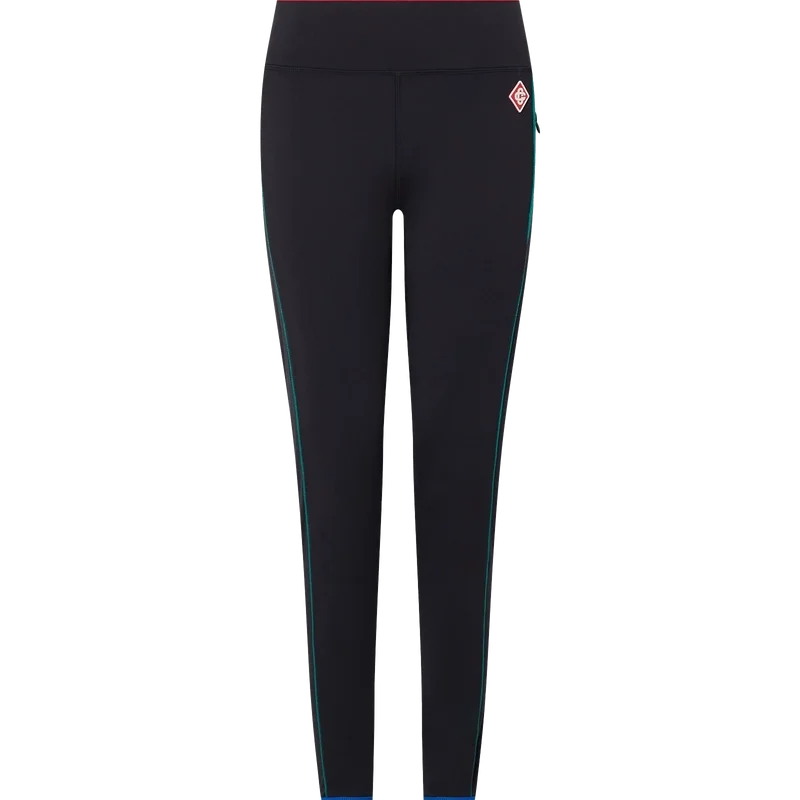 De sportlegging is een lange sportlegging, vervaardigd uit rekbare sportstof. Afgewerkt met het kenmerkende Diamond Monogram van het huis, een tailleband met contrasterende rand en een witte streep aan de zijkant.