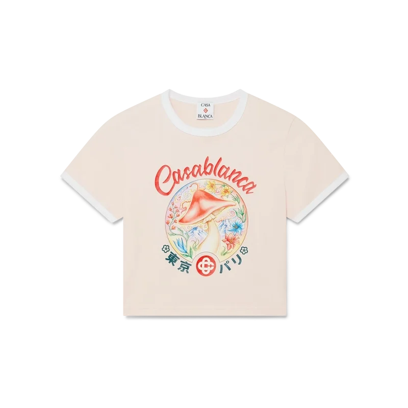 Cropped T-shirt met paddestoelembleem